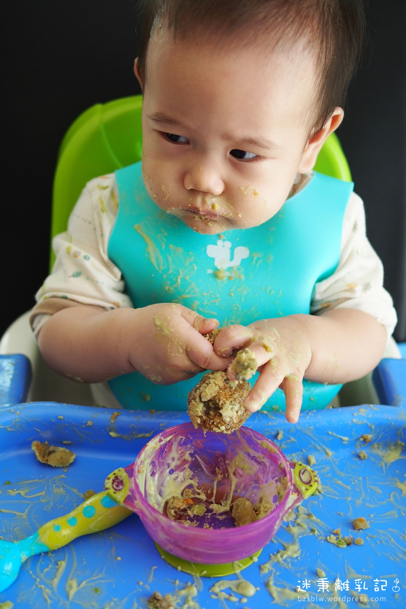 另外心血來潮,給孩子們製作了清爽可口的酪梨優格,正好給身體消一消暑氣。第一次接觸這軟綿綿的泥狀食物,迷秉像是「水牛遇上沼澤地」,興奮得一頭倒栽在地,逕自沈淪嬉戲與優格泥中!(^^;; 結果劈哩啪啦地,轉眼孩子成了「綠嘴花貓」了!呵呵!至於蕃薯球嘛,也蠻合迷秉胃口的。不算地上的,前後應該也吞了有兩大顆吧!