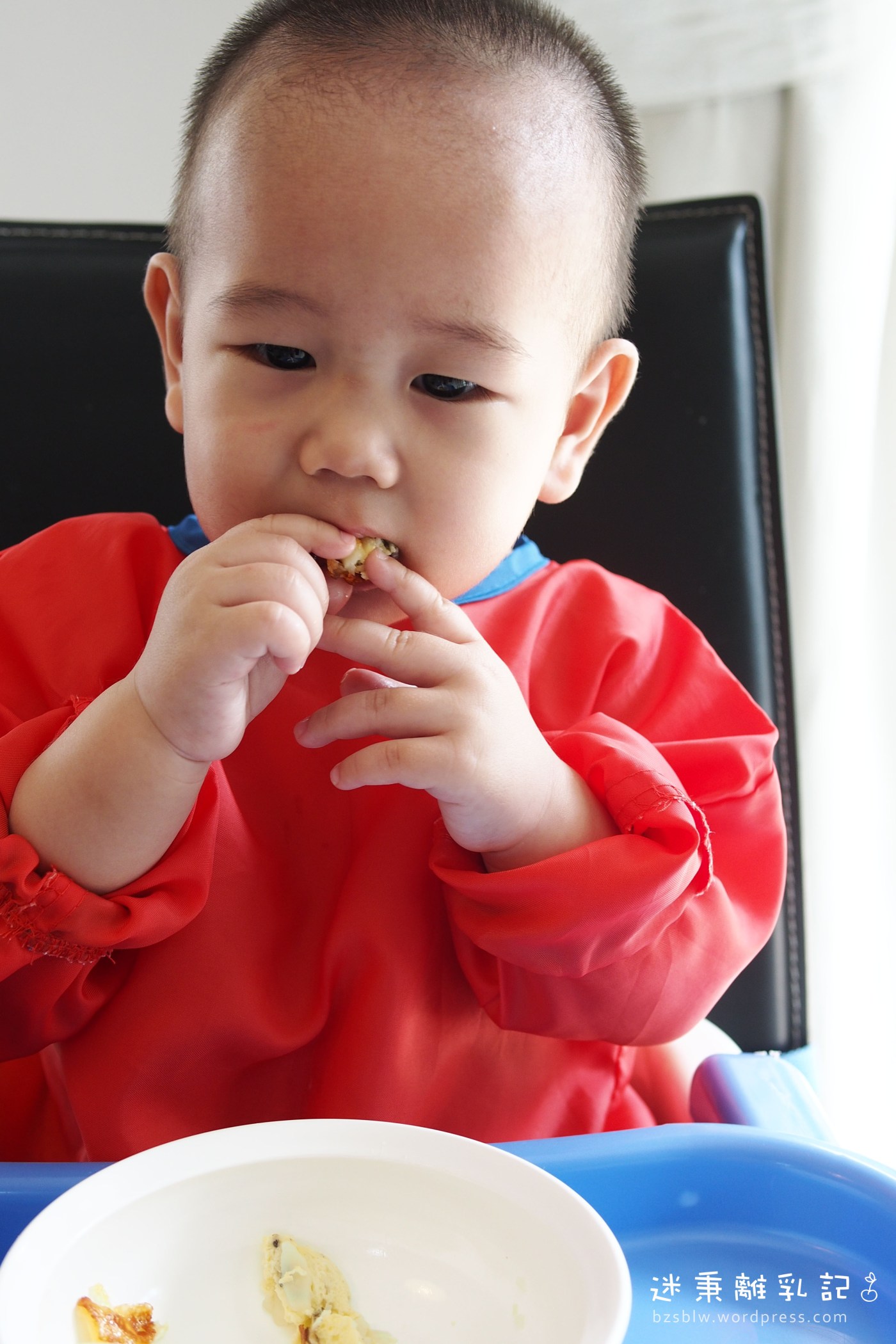 這洋蔥馬鈴薯乳酪烤蛋一出爐,我便切了一小塊讓迷秉先嚐為快。這孩子對於帶黃金乳酪的食物一般都是來者不拒無任歡迎,只見他雙管齊下一會兒叉子一會兒手,轉眼便將第一塊的馬鈴薯烤蛋給扒個精光。我見狀趕緊往他碗中再次「加碼」好一大塊的馬鈴薯烤蛋。這時門鈴響起,是家中嫂子來作客。就在我與嫂子並膝長談之際,迷秉旁若無人般自顧自地享用碗中的美味早餐,偶爾抬頭對我倆發出靦腆滿足的微笑。^^ 就這樣,這孩子不急不緩地將馬鈴薯烤蛋吃得七七八八剩下最後烤盅裡的四分一,另外還啃掉了兩大車輪的火龍果,看得嫂子瞪眼咋舌頻頻搖頭說這小子吃太多了,看那小肚子脹的,媽咪得還是加以控制控制的好啊~!(◎_◎;)