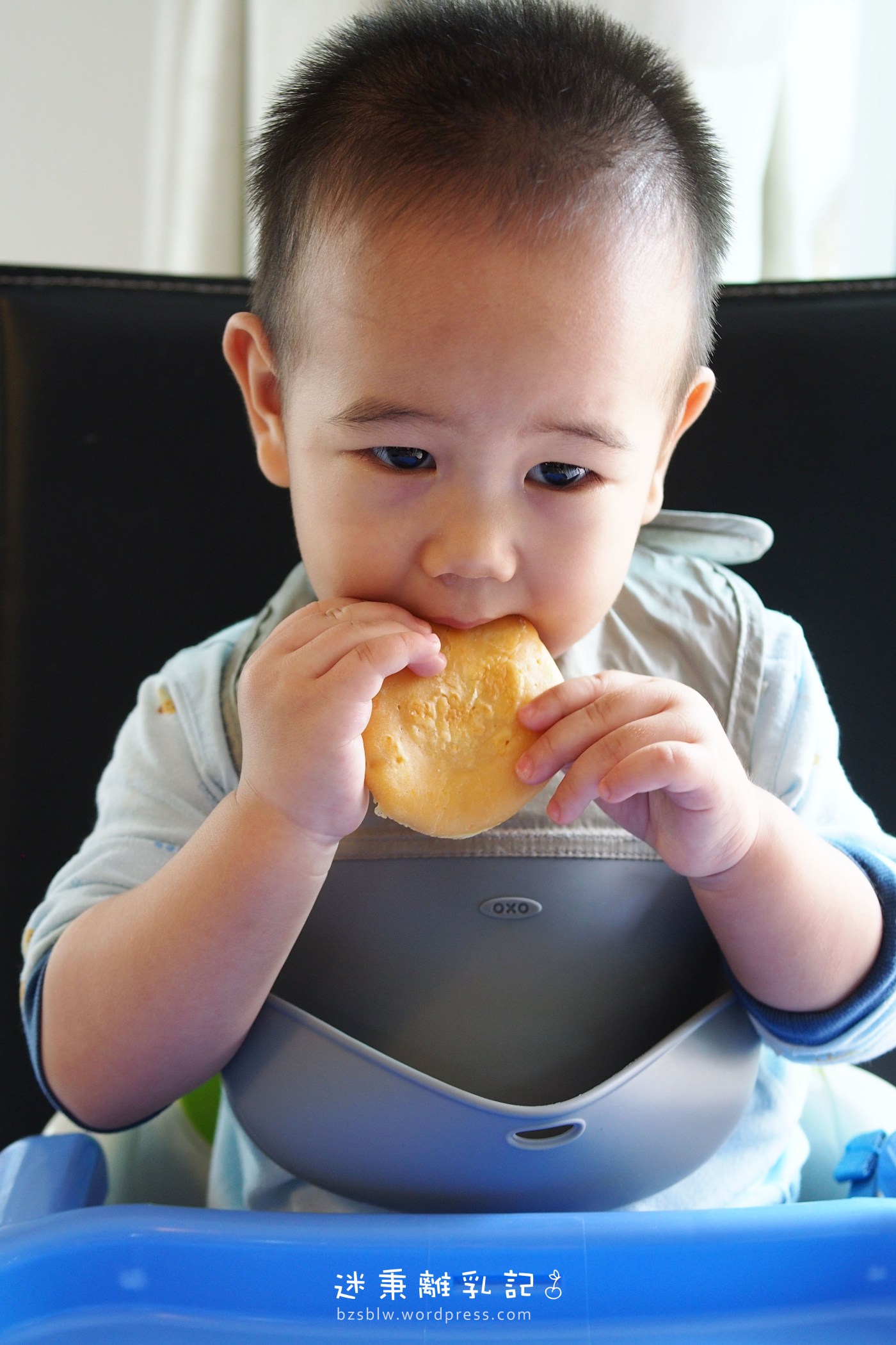這個早餐很簡單,就甜薯鬆餅,加久違的紅豆黑糯米燕麥粥。迷秉吃了兩塊鬆餅,跟著逕自拿起湯匙舀了燕麥粥大口大口地吃起來。這是第一次迷秉用湯匙自個兒舀超過三口的食物吃,呵呵,雖然湯匙到了口邊還是一樣地「倒栽翻覆」,但卻絲毫不影響這孩子的胃口,媽咪看著心裏倒是個小小的安慰。都十五個月大了,這孩子「倒著握湯匙」一事,就像是「卡帶」一樣一直卡在那裏很久了遲遲沒辦法改善通過。除非是煮得粘稠一些的燕麥或米飯等尚且能夠「定格倒掛」在湯匙上,其他比較鬆散的食物一般上還沒送入口中,便已隨著翻覆的湯匙「石沈大海」掉落於胸前的口袋裡!σ^_^; 看著迷秉的同窗同學甚至學弟學妹們一個個開始對餐具的運用心領神會,真是讓人羨慕哪!唉算了~我也只能任由他自由發揮,巴巴地期待這孩子哪天開竅給媽咪一個「神來驚喜」吧!╮(╯▽╰)╭