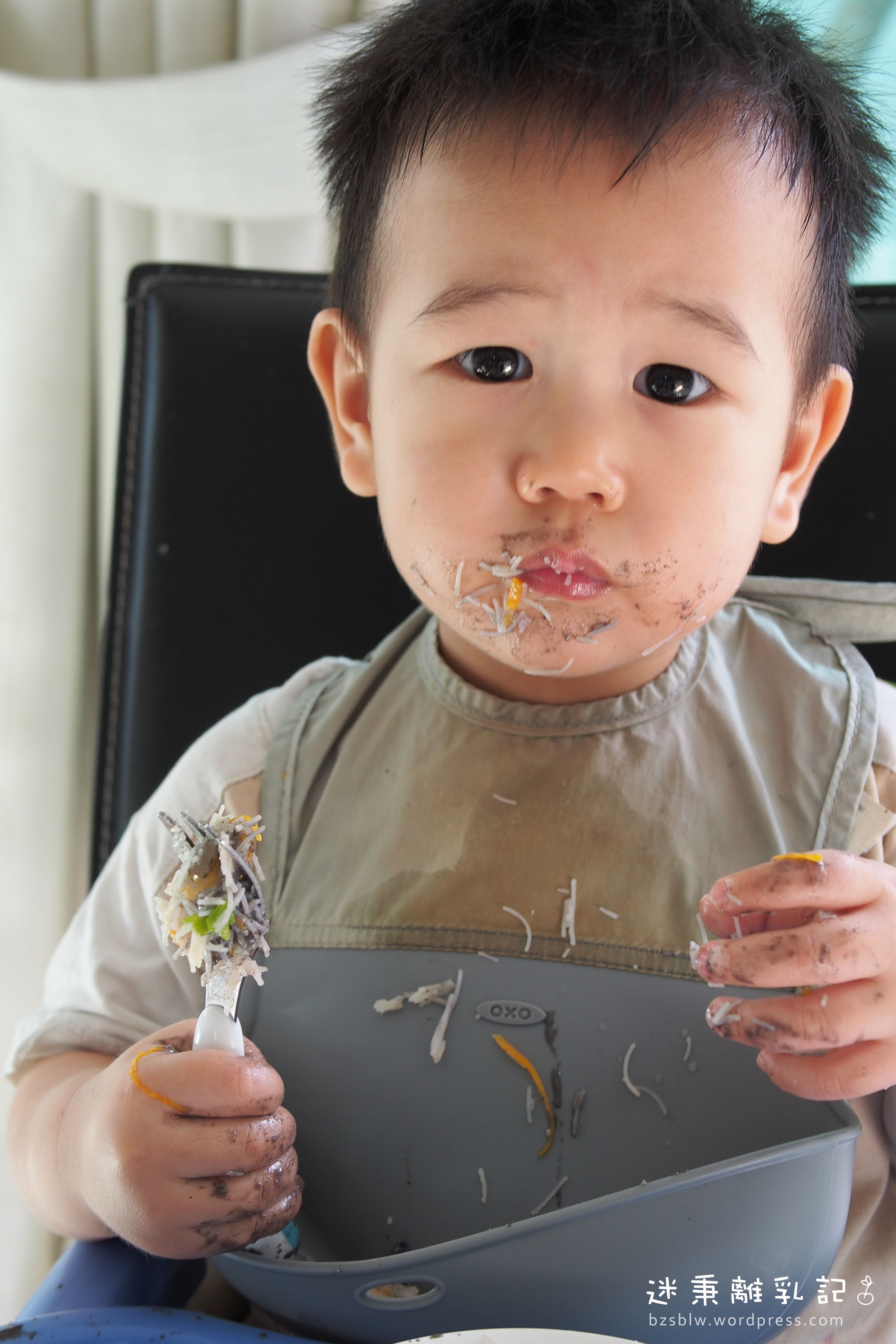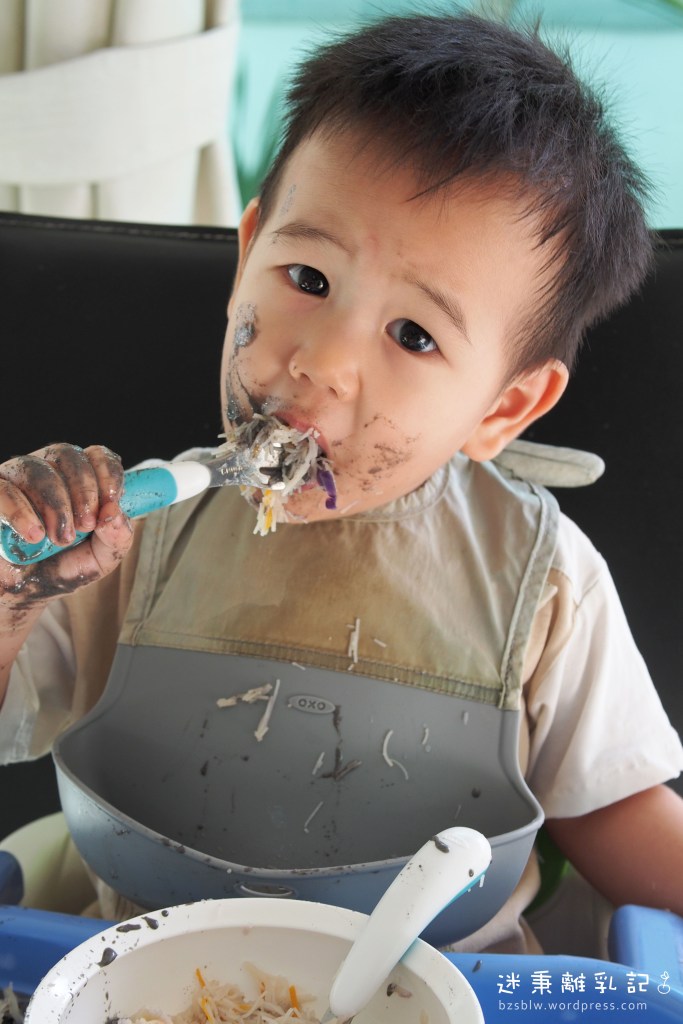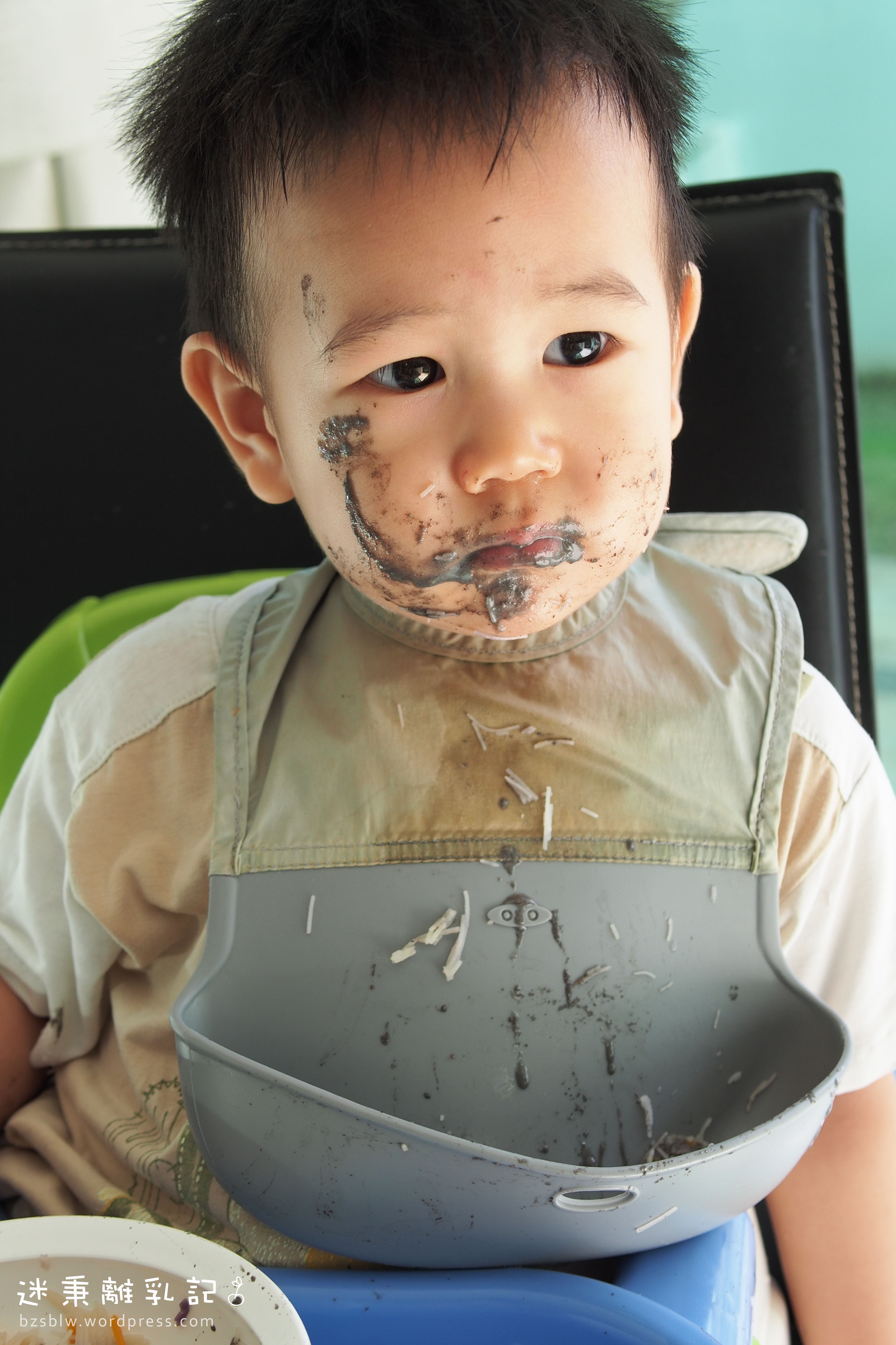炒米粉與黑芝麻糊,對迷秉來說都是第一次。這小子看著媽咪怪怪的炒米粉,用手抓了吃幾口後便開始嚷嚷起來。我想應該是昨天夜裡睡不好的關係吧,今天這孩子看起來累累的。好吧,那就直接來黑芝麻糊咯!我給迷秉盛了一小碗原汁原味的,想說如果不合他意的話再來加糖蜜好了。卻沒想到這小子眉頭皺也沒皺一下,就直接大口大口地將無糖黑芝麻糊給喝了!σ(^_^;)
