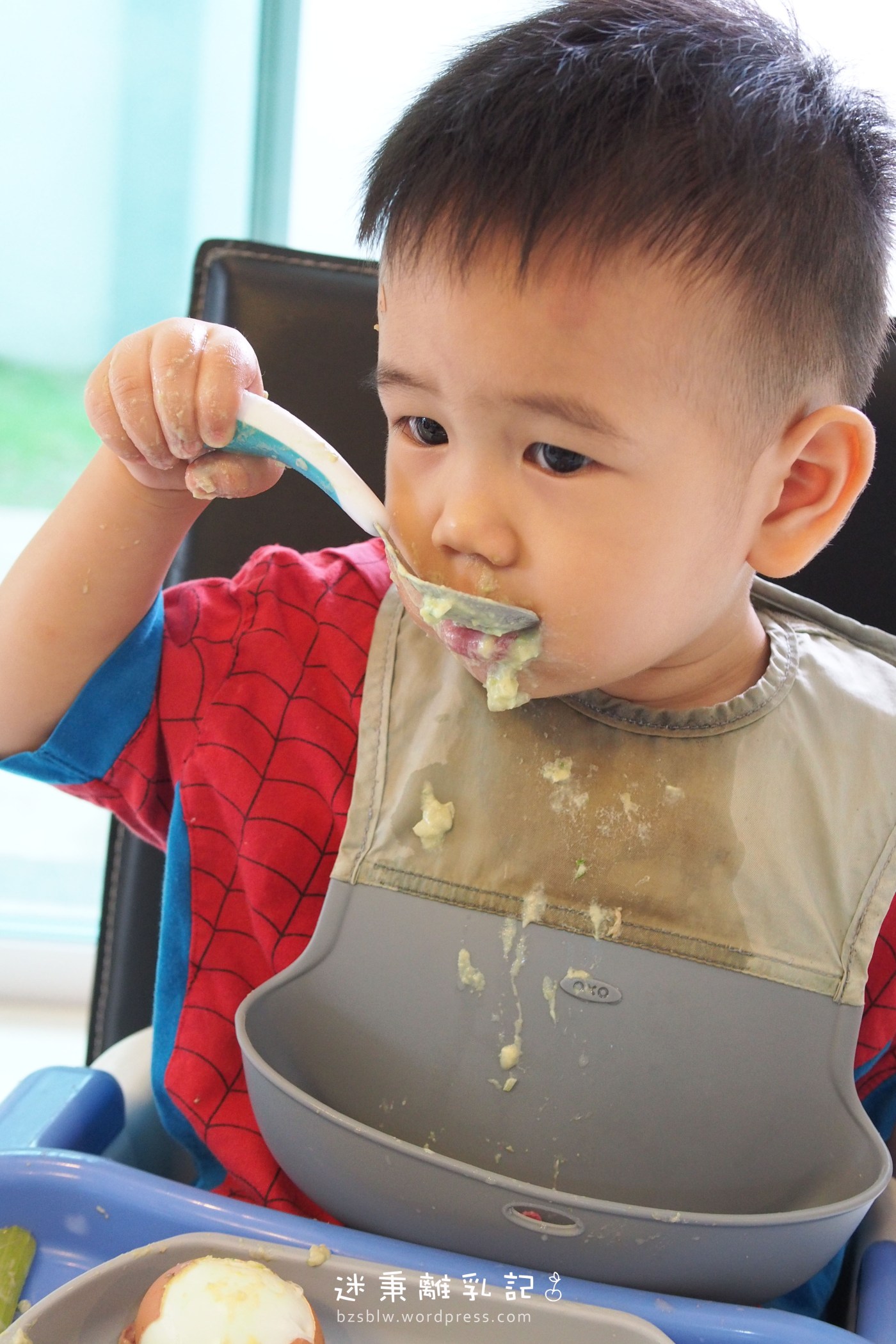 迷秉接過餐盤,第一時間皺起眉頭毫不領情地將所有的愛心鬆餅還給了我!(╥﹏╥) 不過他倒是對酪梨優格裡的紅色小愛心有興趣,伸出五爪瞬間秒殺了好幾顆。呵呵,明明都一樣是媽咪的愛心啊~怎麼待遇卻差那麼遠呢?σ^_^; 這時迷秉一如往常地抓起了湯匙往餐盤裡一陣淘寶,跟著舀起了滿滿一大匙的酪梨優格泥,筆挺無誤地直直送往口中!(⊙o⊙) 當下我愣住了,心想怎麼這次不見「翻船事件」發生呢?!按耐住內心的激動,我以最平和的口氣不斷給這孩子愛的鼓勵。只見迷秉跟著一勺接一勺地大口大口吃了起來,呵呵,那是從未有過的滿足。盼了這許久的春天終於到了,媽咪我看著是內心澎湃無限感慨吶~(^з^)-☆