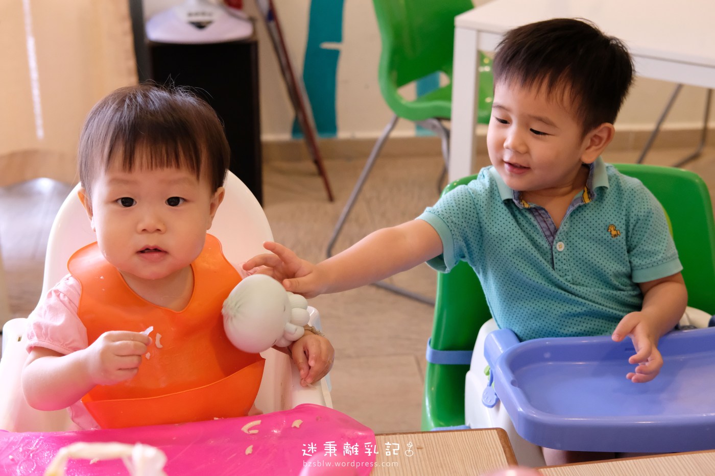 就在泡泡婕也吃完了準備下去更衣時,迷秉卻突然指著餐盒要求再吃,就這樣用手繼續幹完了一大半的貝殼麵以及剩下的水果就正式收檔咯!這時小不點泡泡婕也更好了衣,我忍不住不客氣地將她從晴婕媽手中一把抱了過來死命地揩油!(^﹃^)v 哈哈我這小媳婦兒呀還真是一點都不怕生,還會不時對我報以靦腆的微笑,看得人家心都融化了啦!(⁎⁍̴̛ᴗ⁍̴̛⁎)
