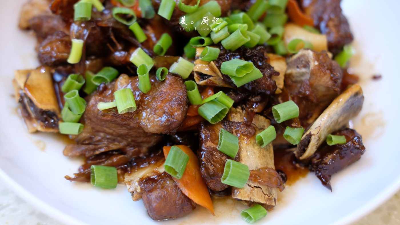 排骨 500g / 薑片 10g / 紅色大蔥 1顆(切片) / 紅蘿蔔 1/2根(切片) / 橄欖油 20g / 冰糖 50g