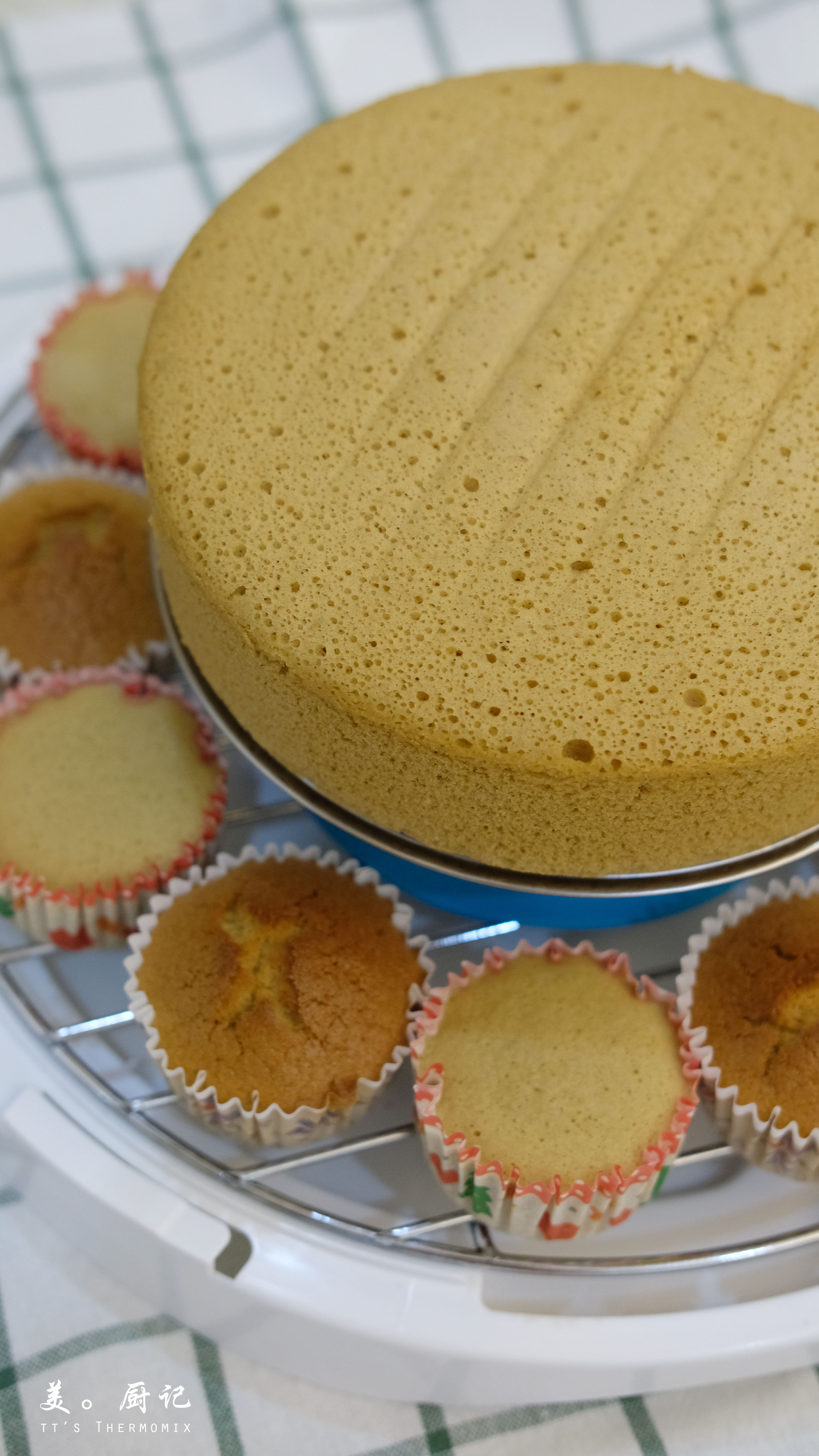 5. 時間到將杯子蛋糕取出放在蒸架上置涼即可。