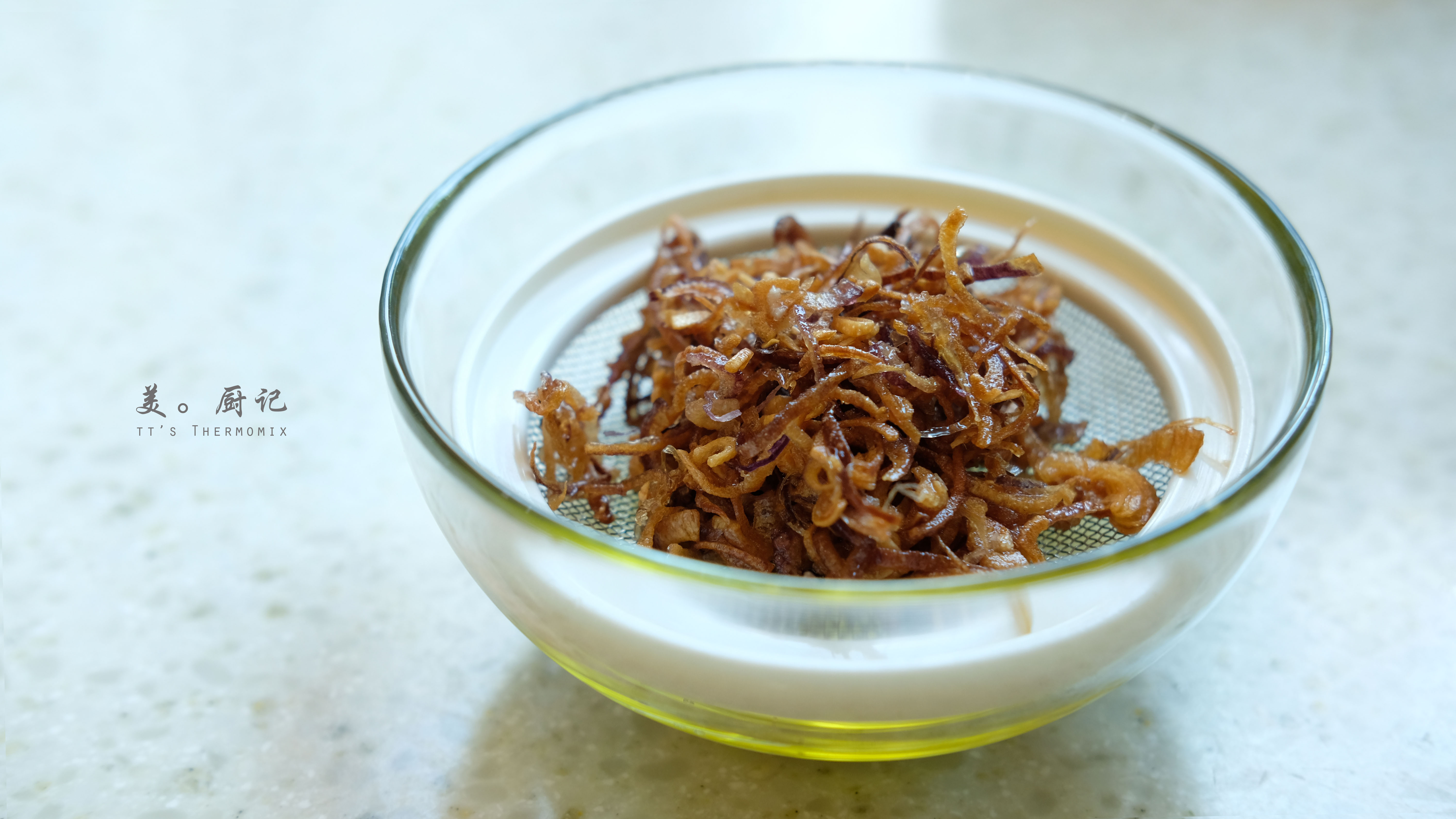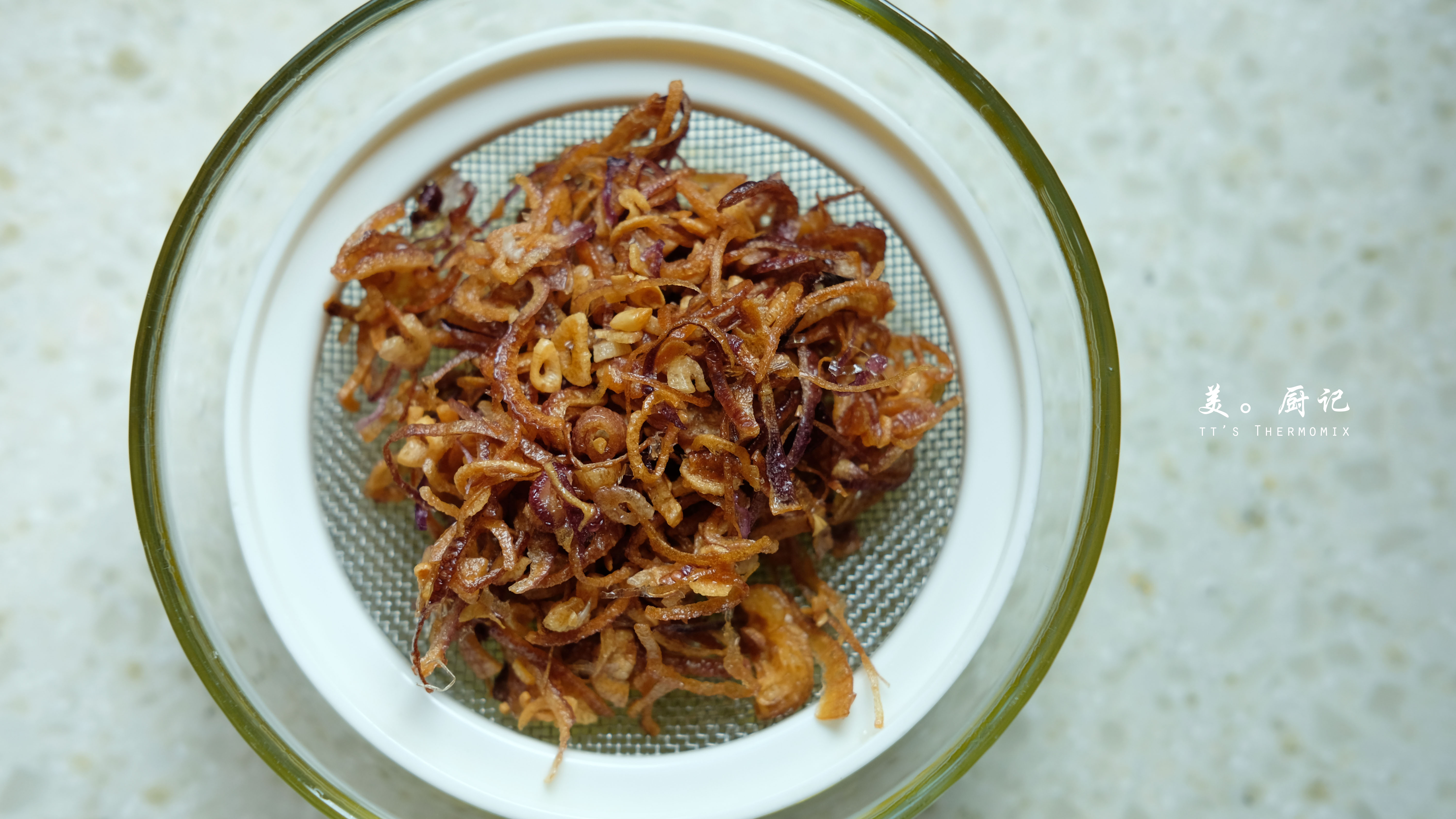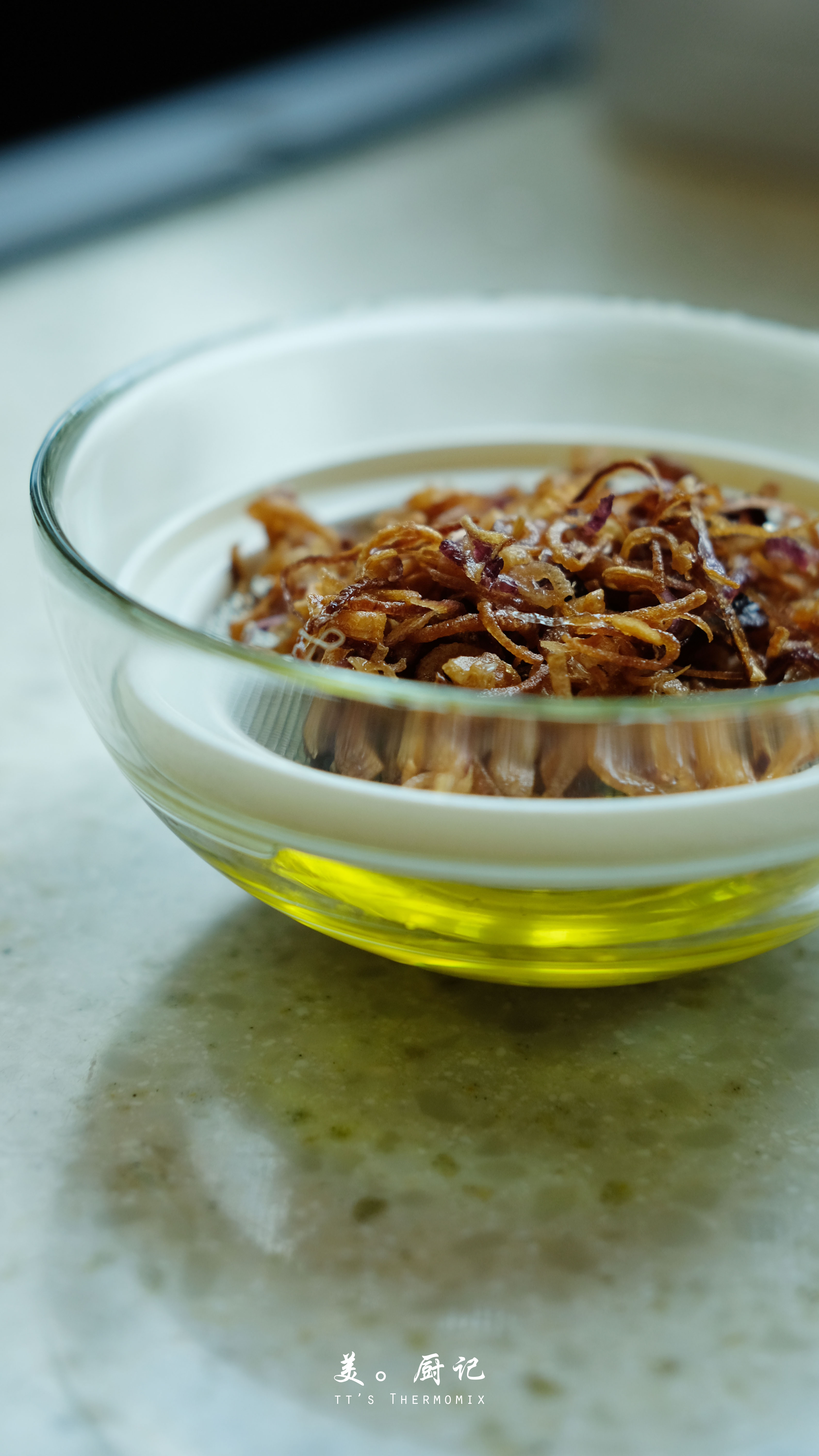 1. 原食譜的油蔥酥是以【20分/120°C/速度1.5】煉製。之前試過但覺得油蔥酥不夠脆口,所以這次還是跟回第一次台灣小美群分享的方法全程用Varoma開蓋來煉製。不過有人提及小美長時間煉油會有傷機身的風險,大家可以自行斟酌拿捏。