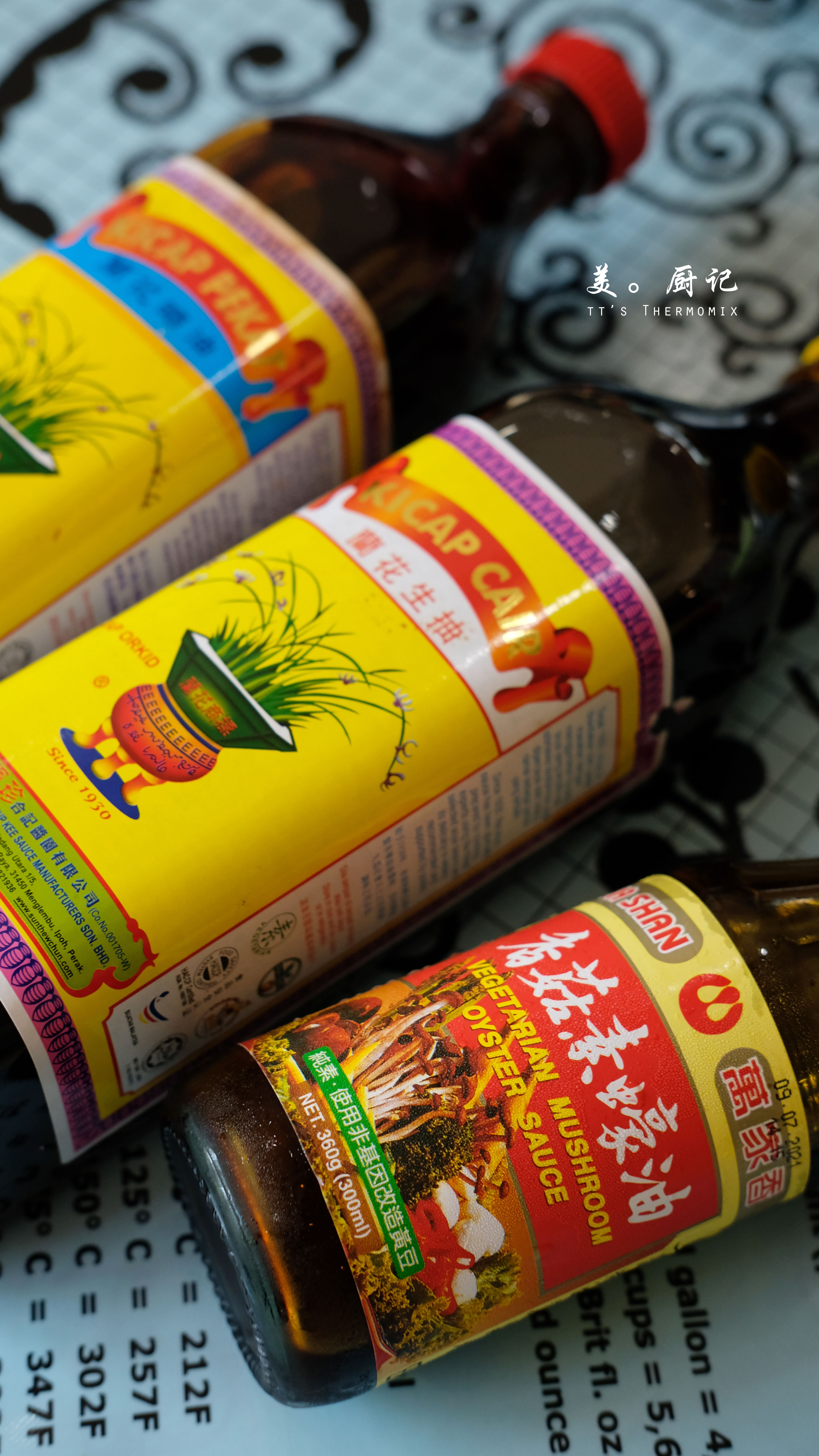 香菇素蠔油  20g / 醬油 10g / 黑醬油 10g / 清水 10g