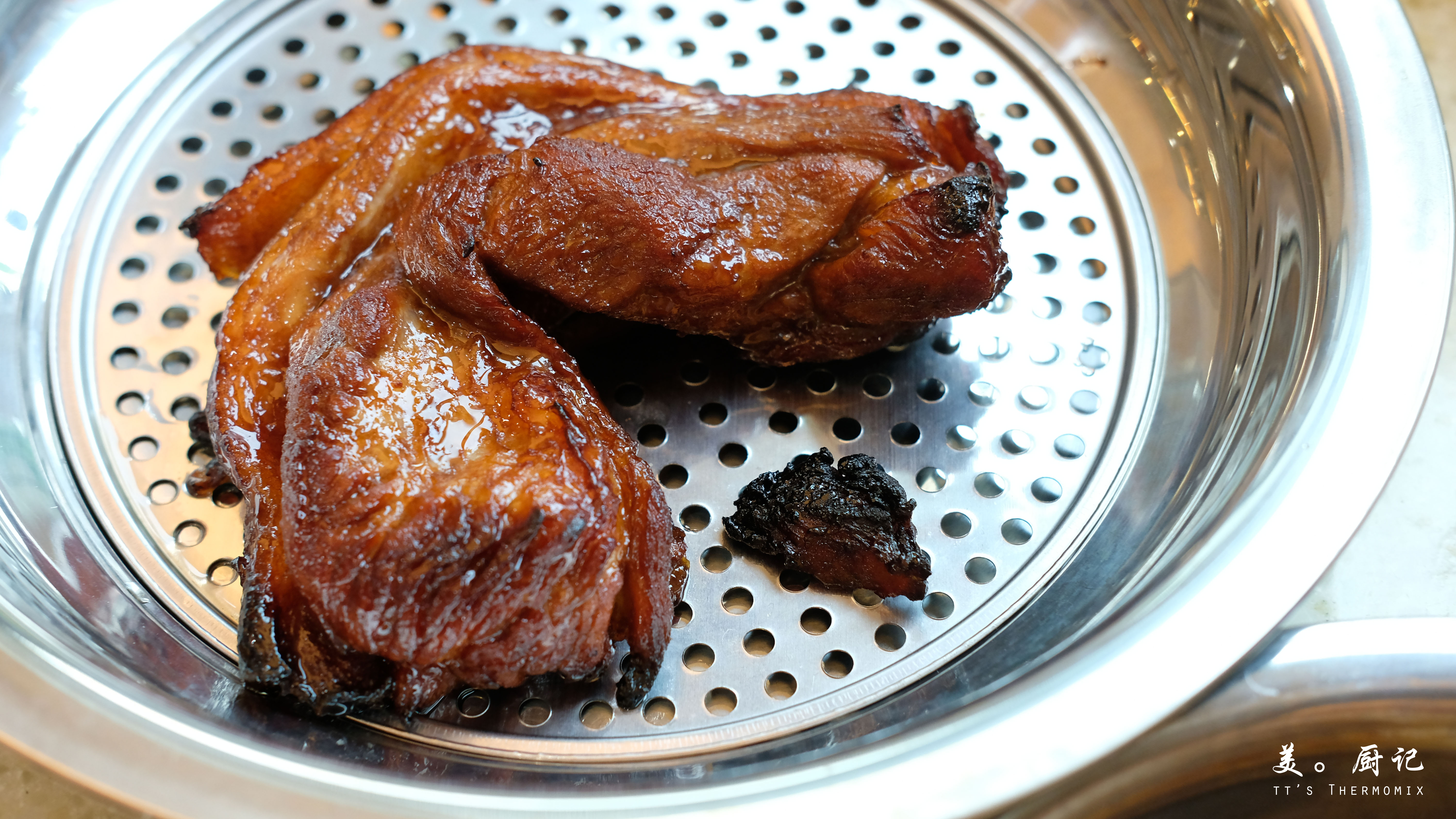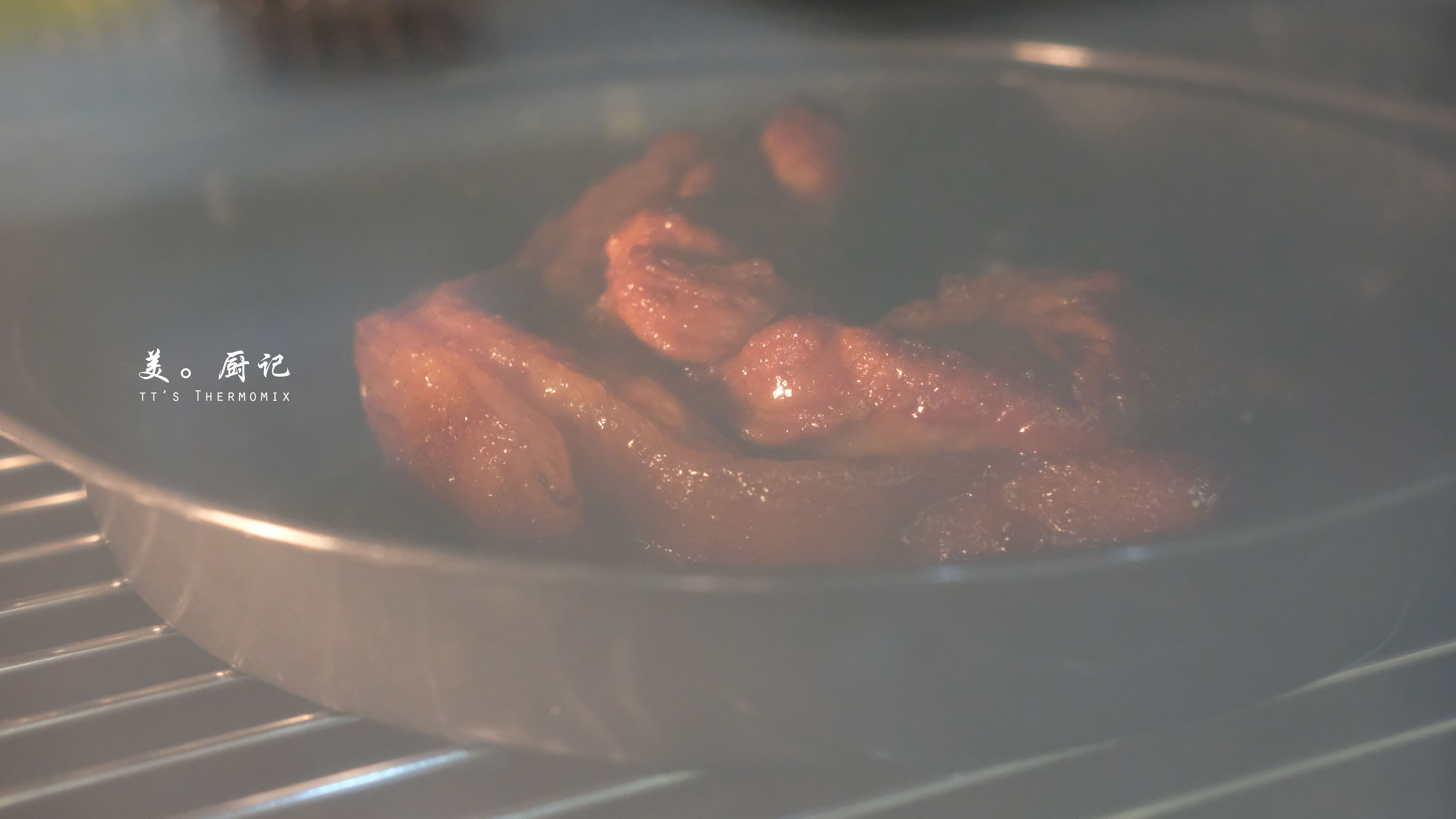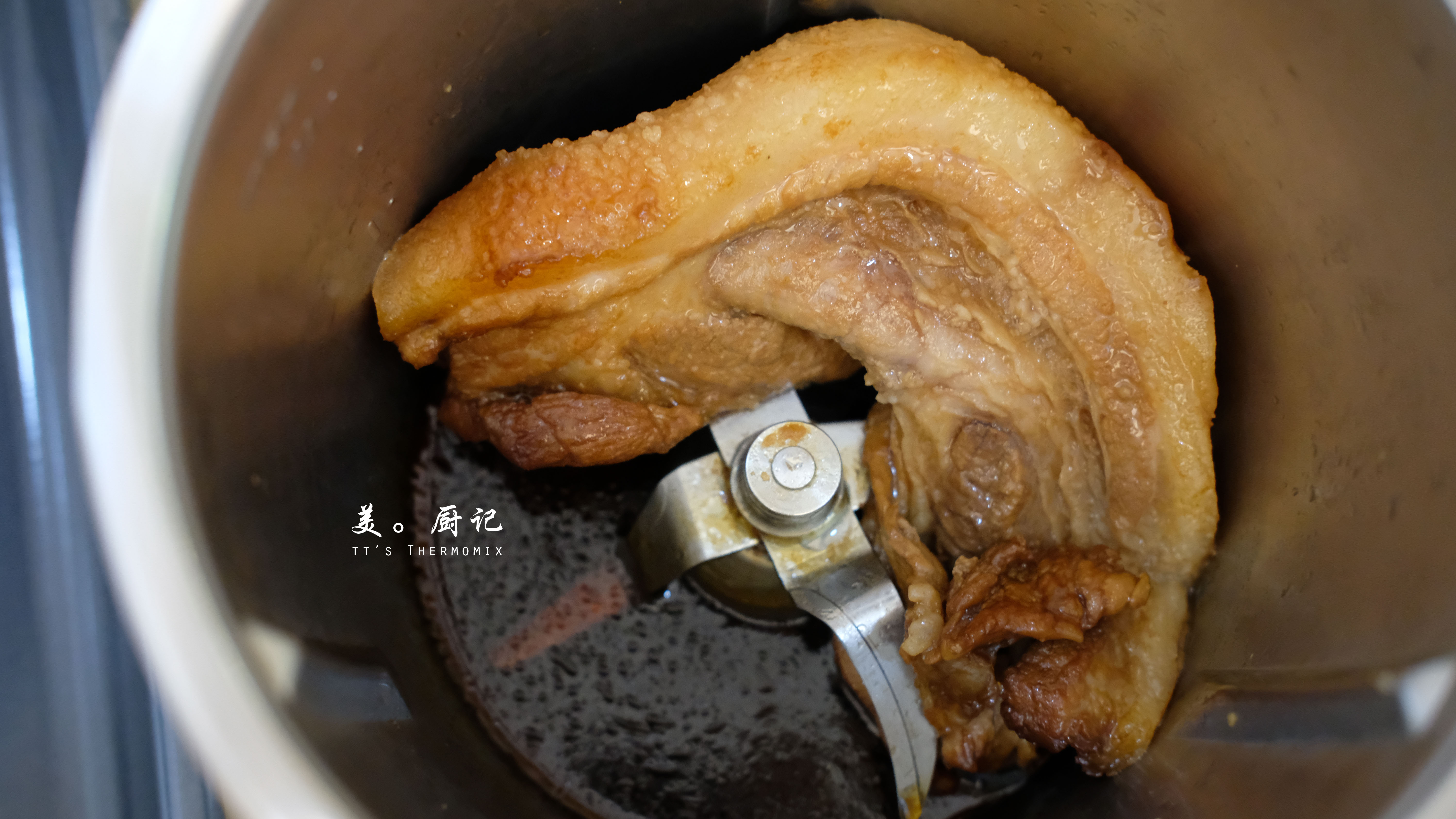 1. 將夾心肉放入網鍋裡加水淹沒,以【15分/50°C/速度4】進行跑活水。