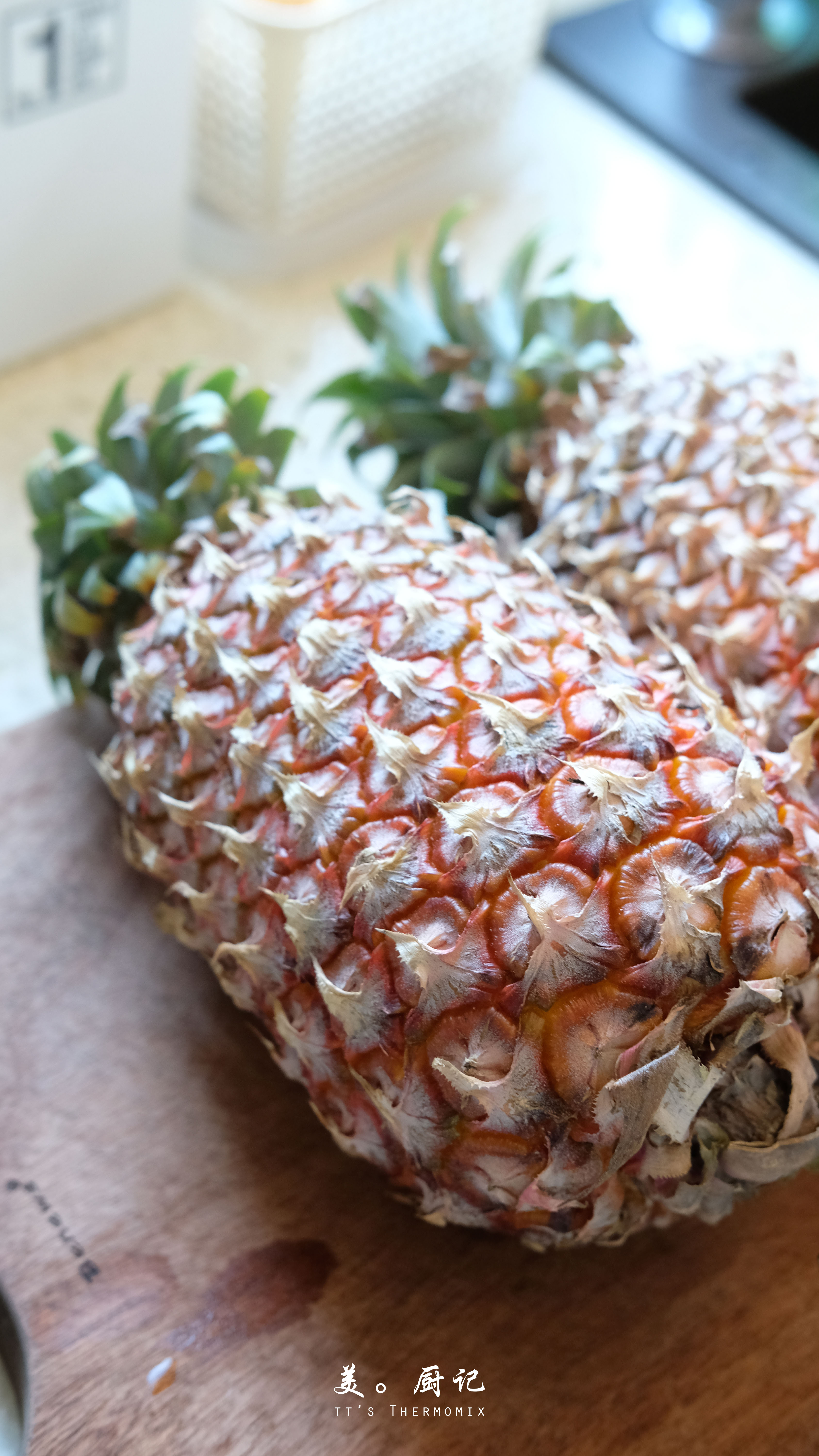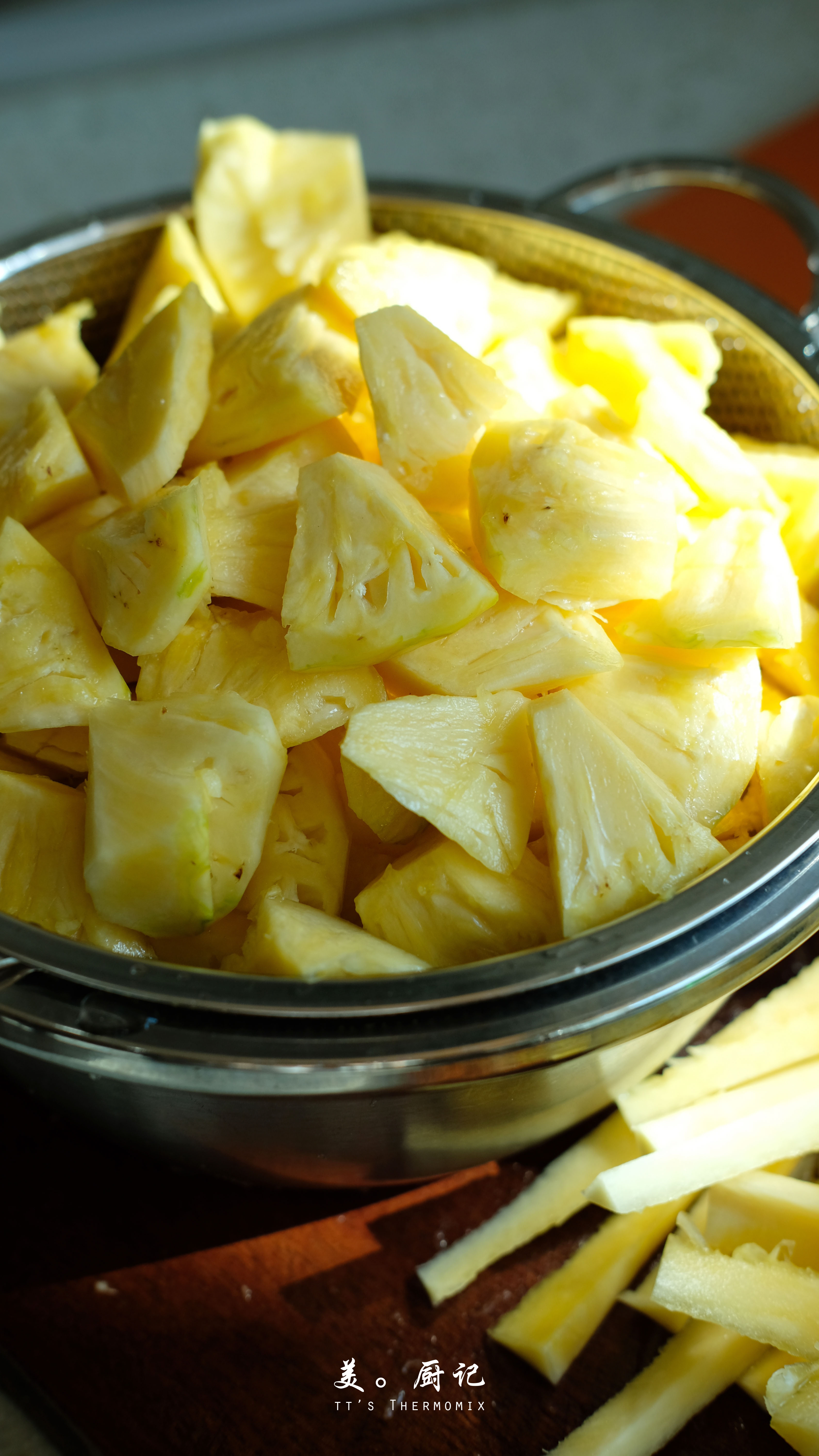 黃梨 1500g(切塊)/ 椰糖 100g (切小塊) / 肉桂棒 1支 / 丁香 3枚