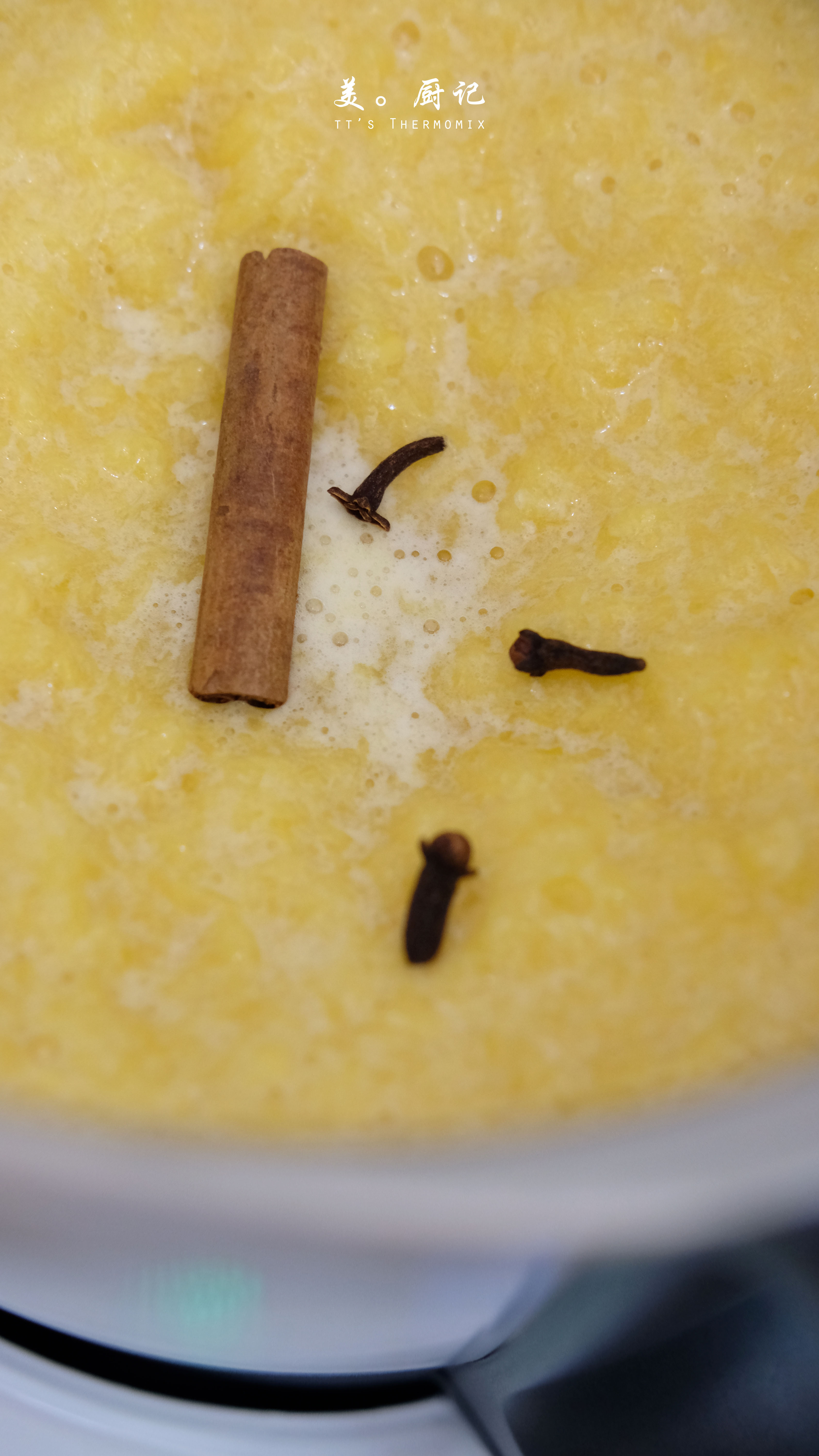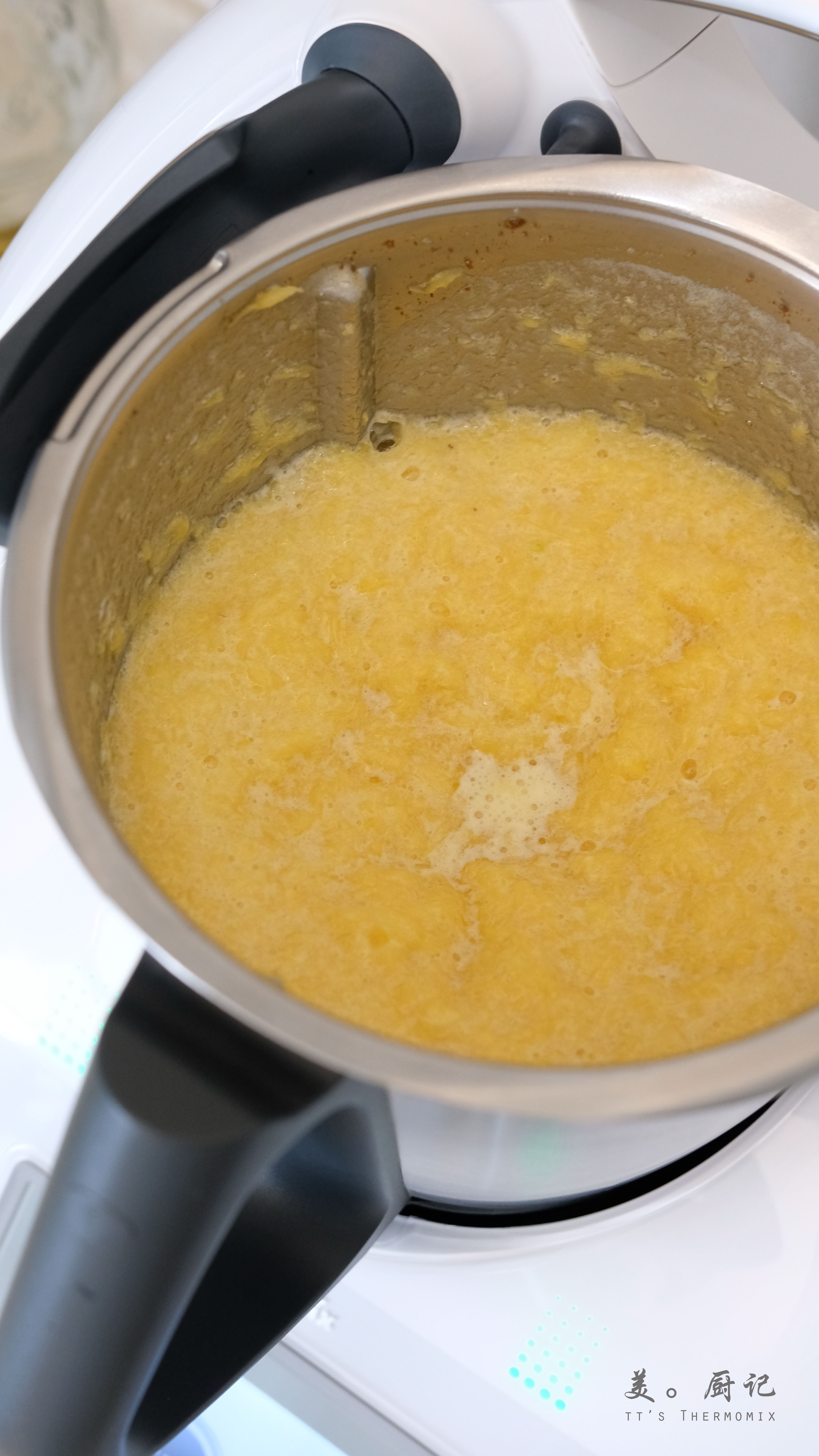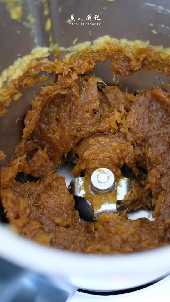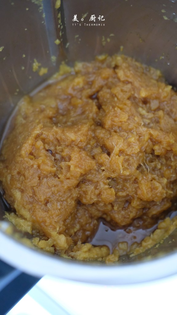 4. 時間到將蒸鍋取下,以【20~30分/Varoma/速度2/開蓋】繼續煮到黃梨餡完全脫水變黏稠為止。
