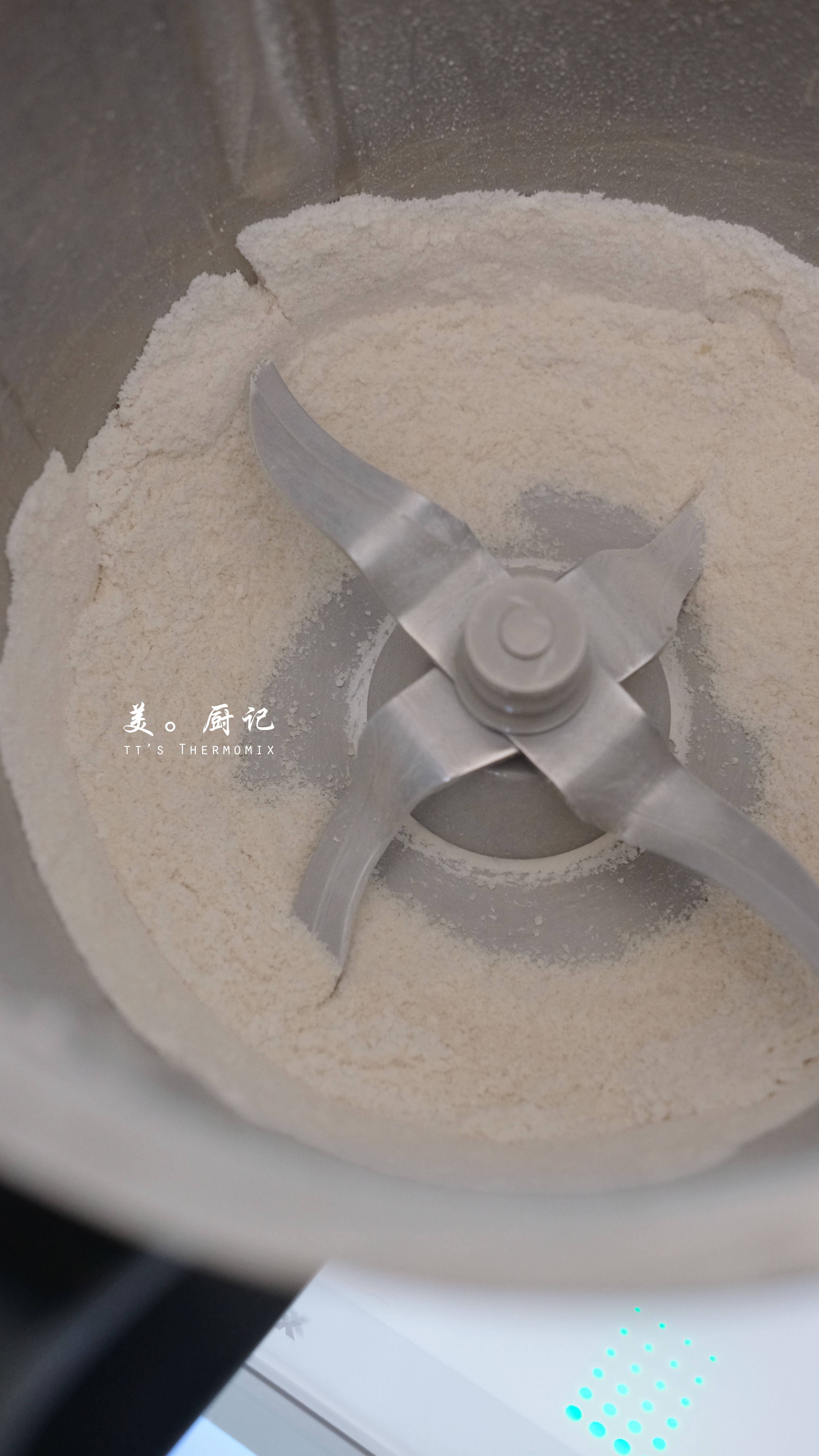 - 加入所有粉類,以【Turbo/1秒/2次】混合。
