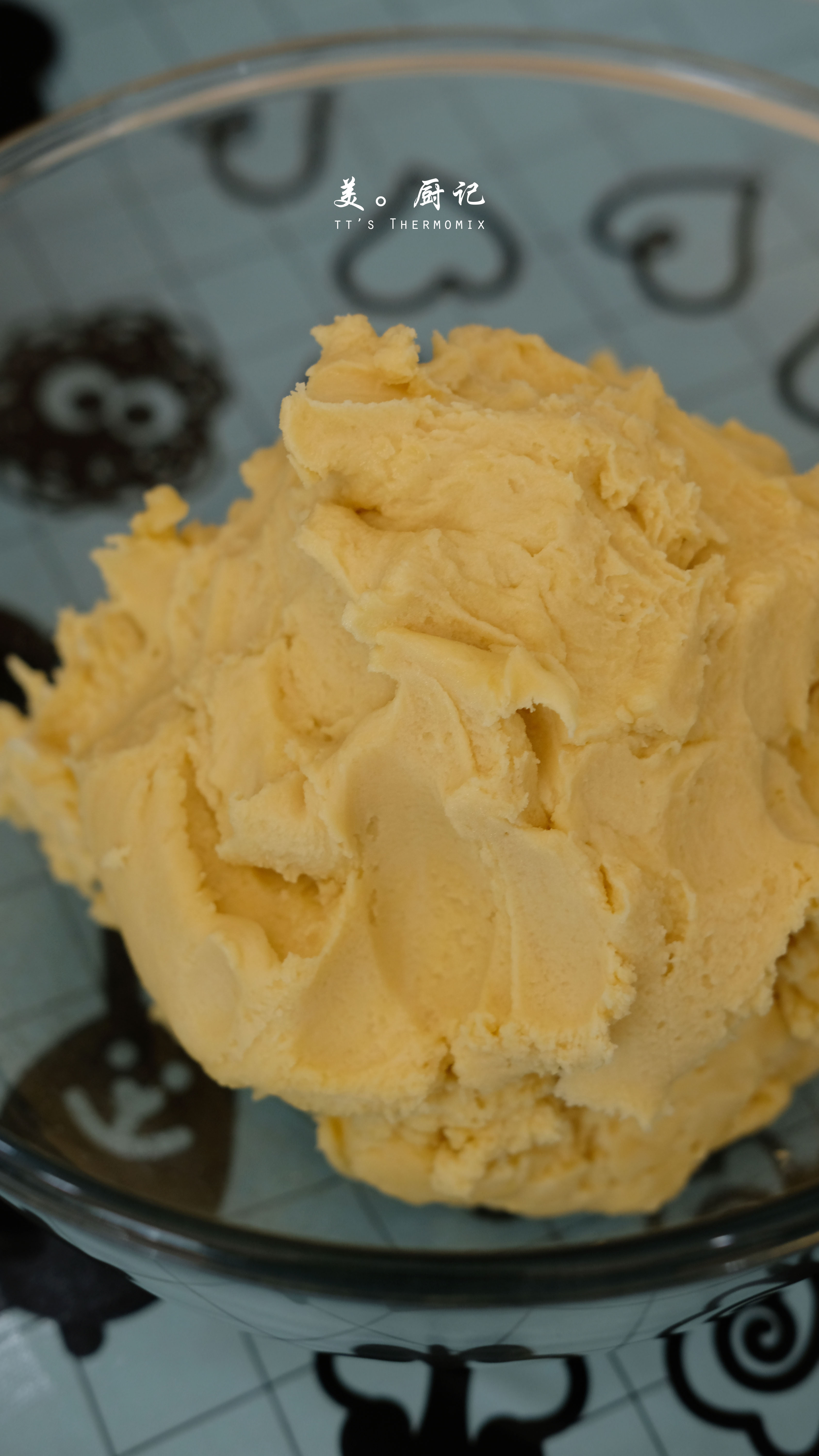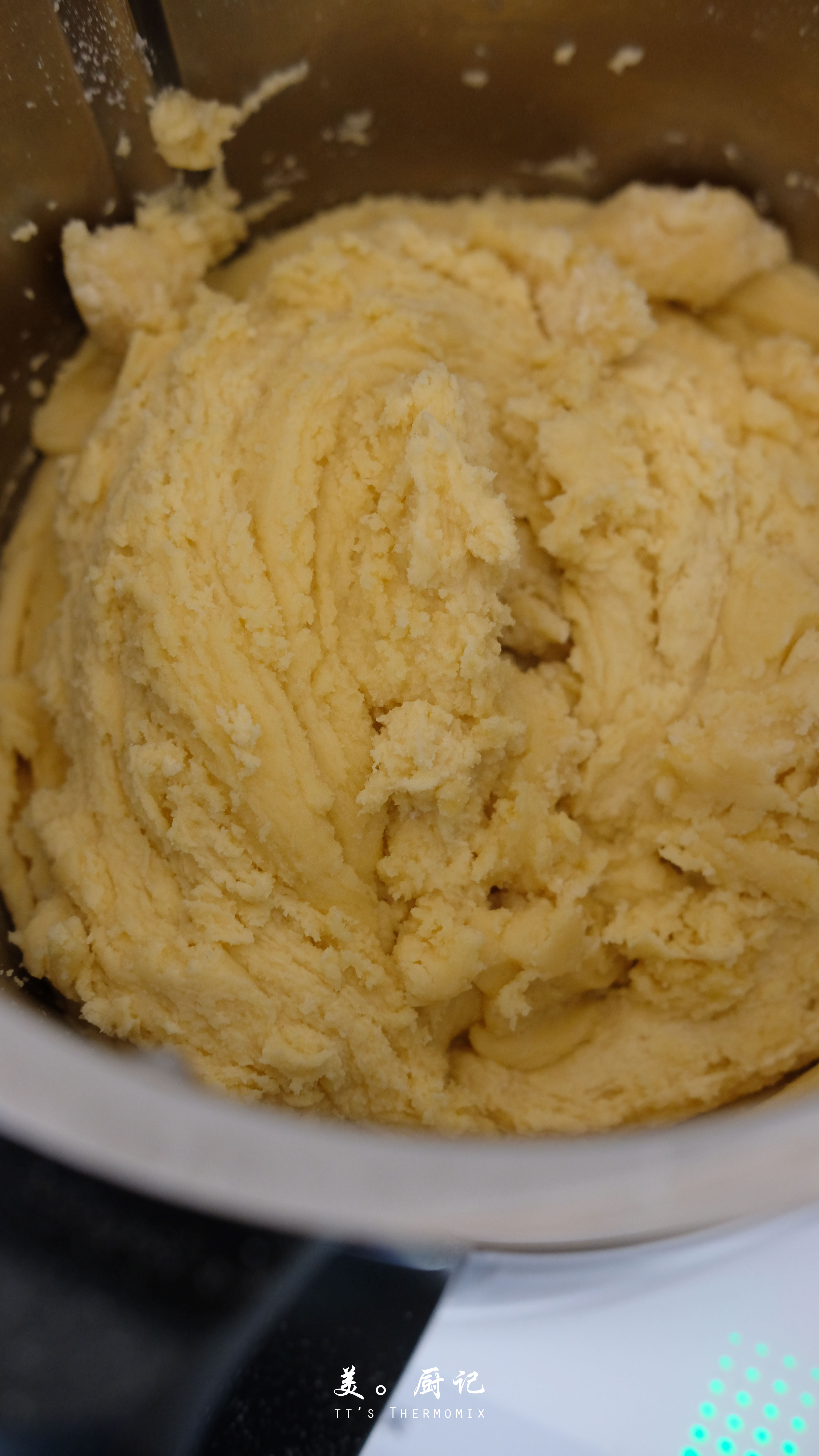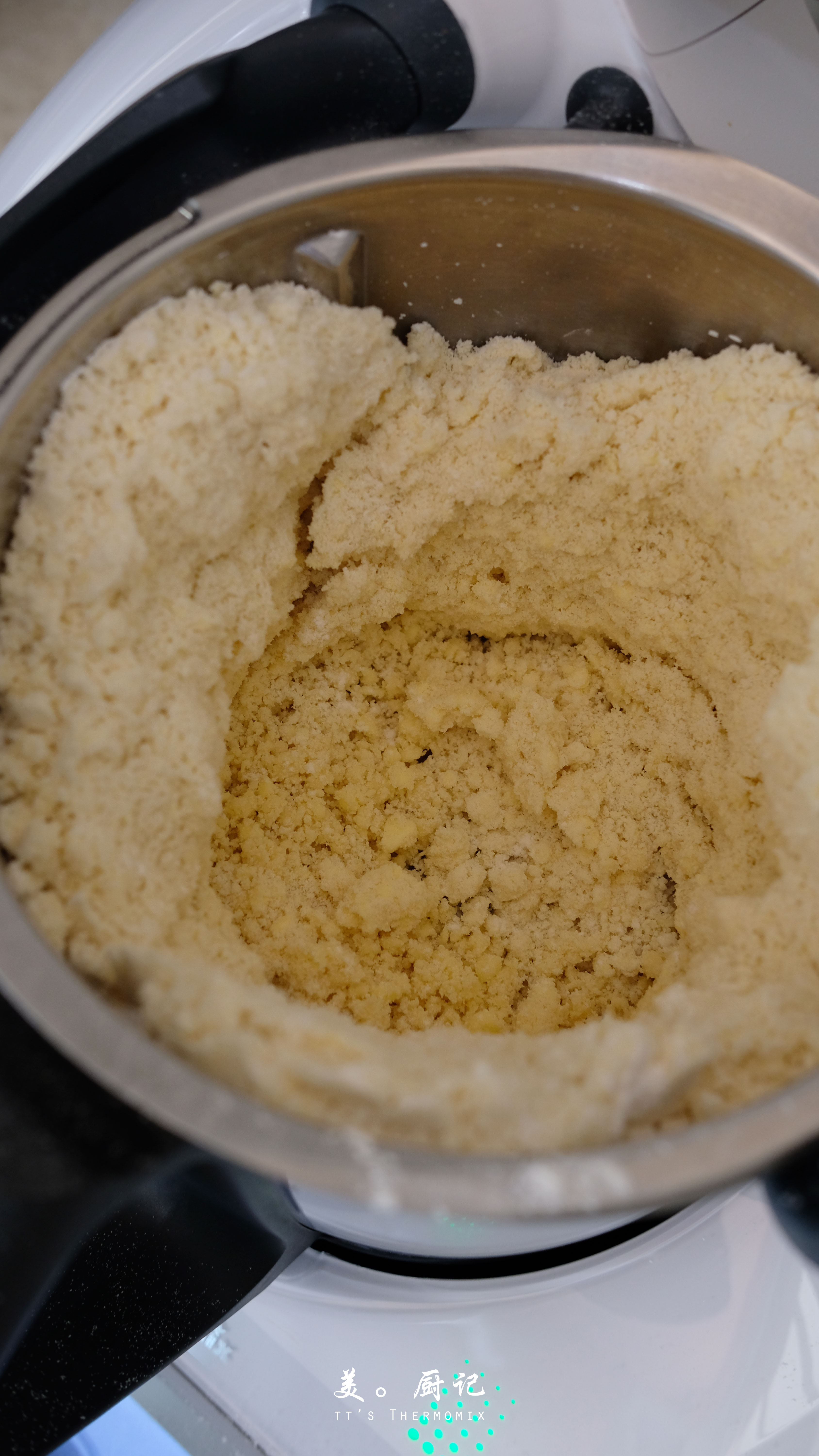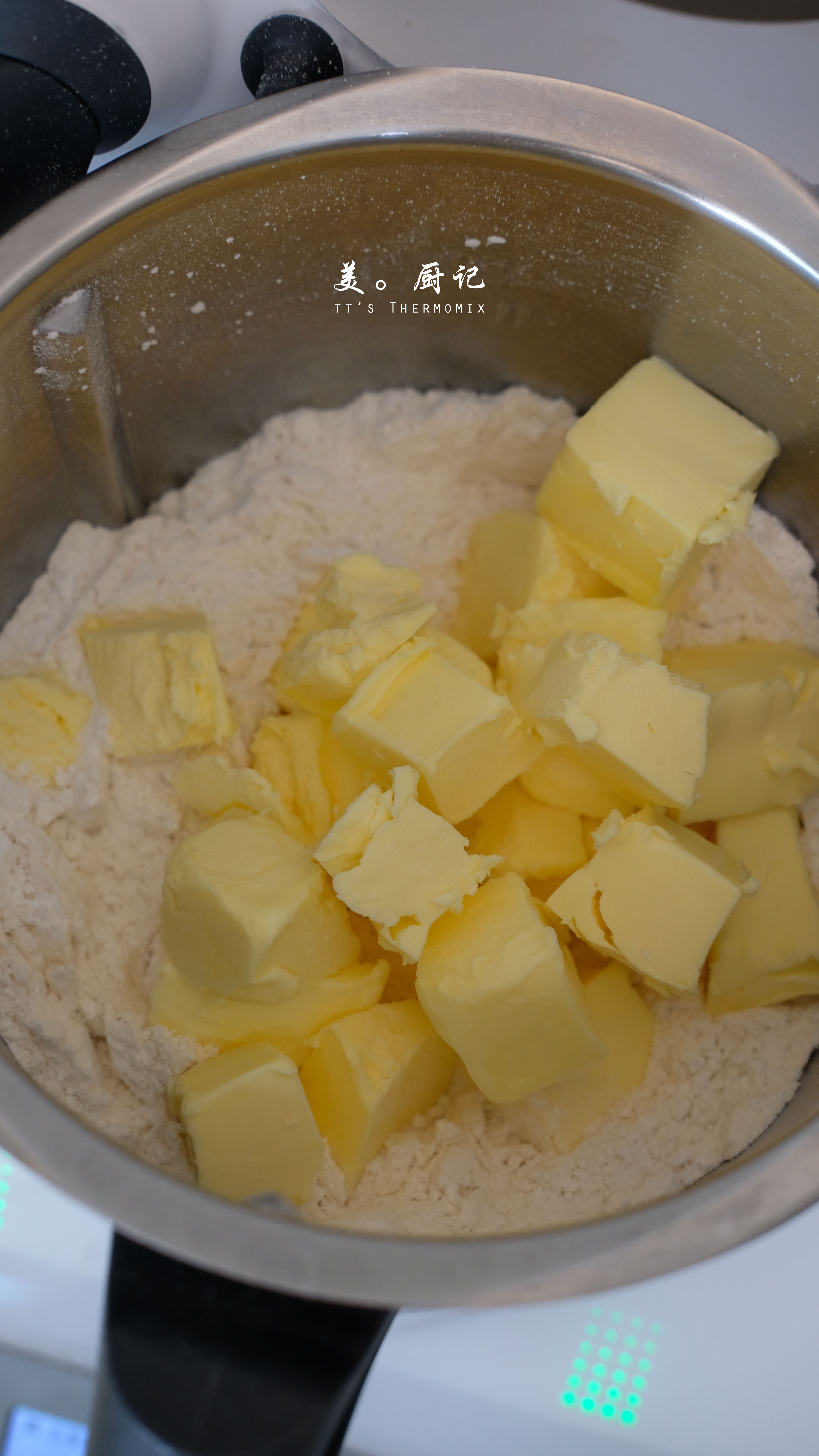有機蔗糖 70g / 中筋麵粉 220g / 低筋麵粉 220g / 豆粉(取代原食譜奶粉) 40g / 玉米粉 20g / 蛋黃 2顆 / 冷凍奶油 300g(切丁) / 鹽 1tsp