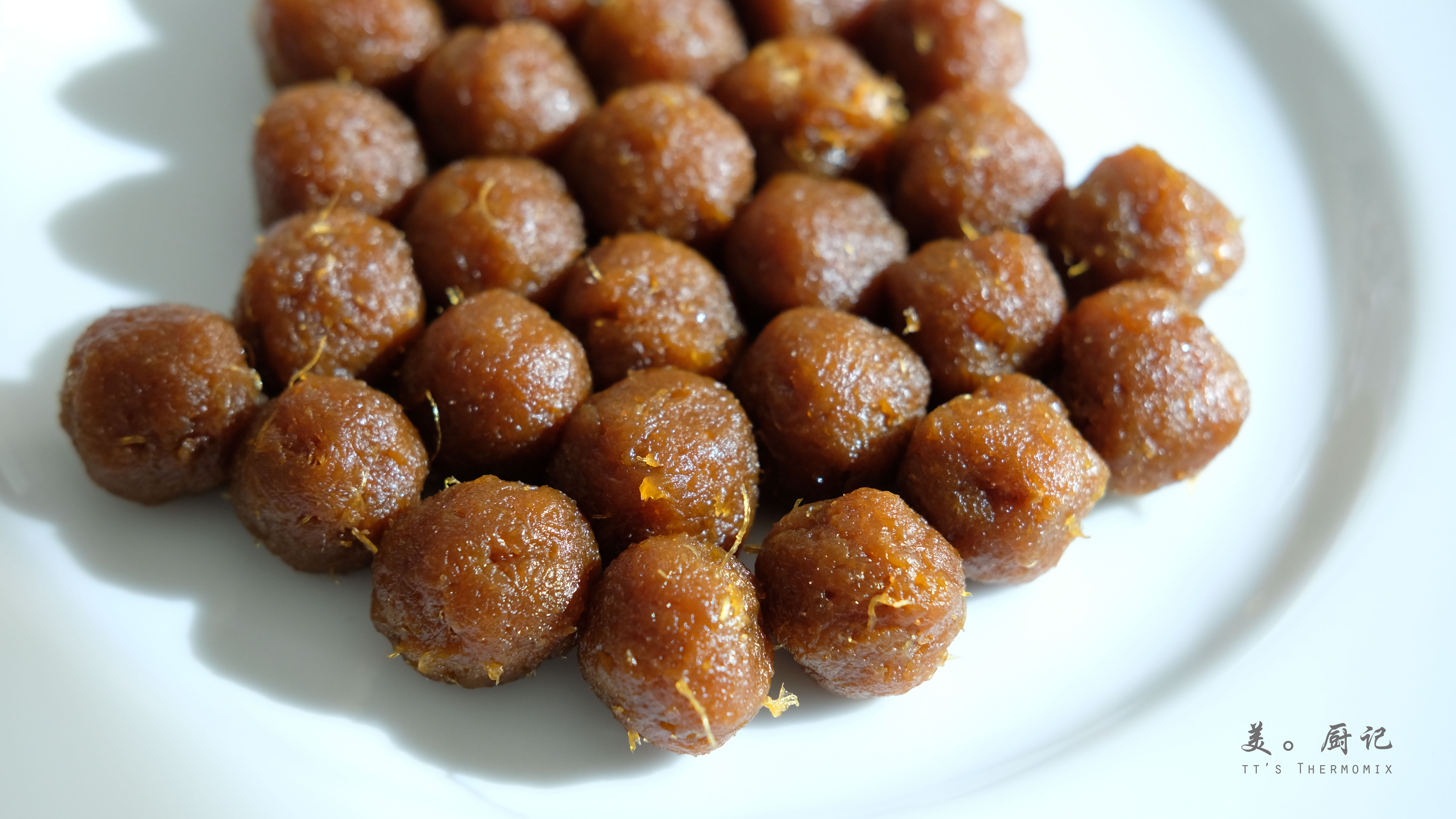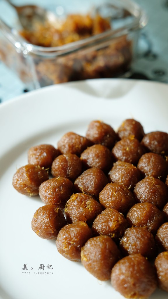 - 將冷藏的黃梨餡取出,全部捏成約7g的小球備用。