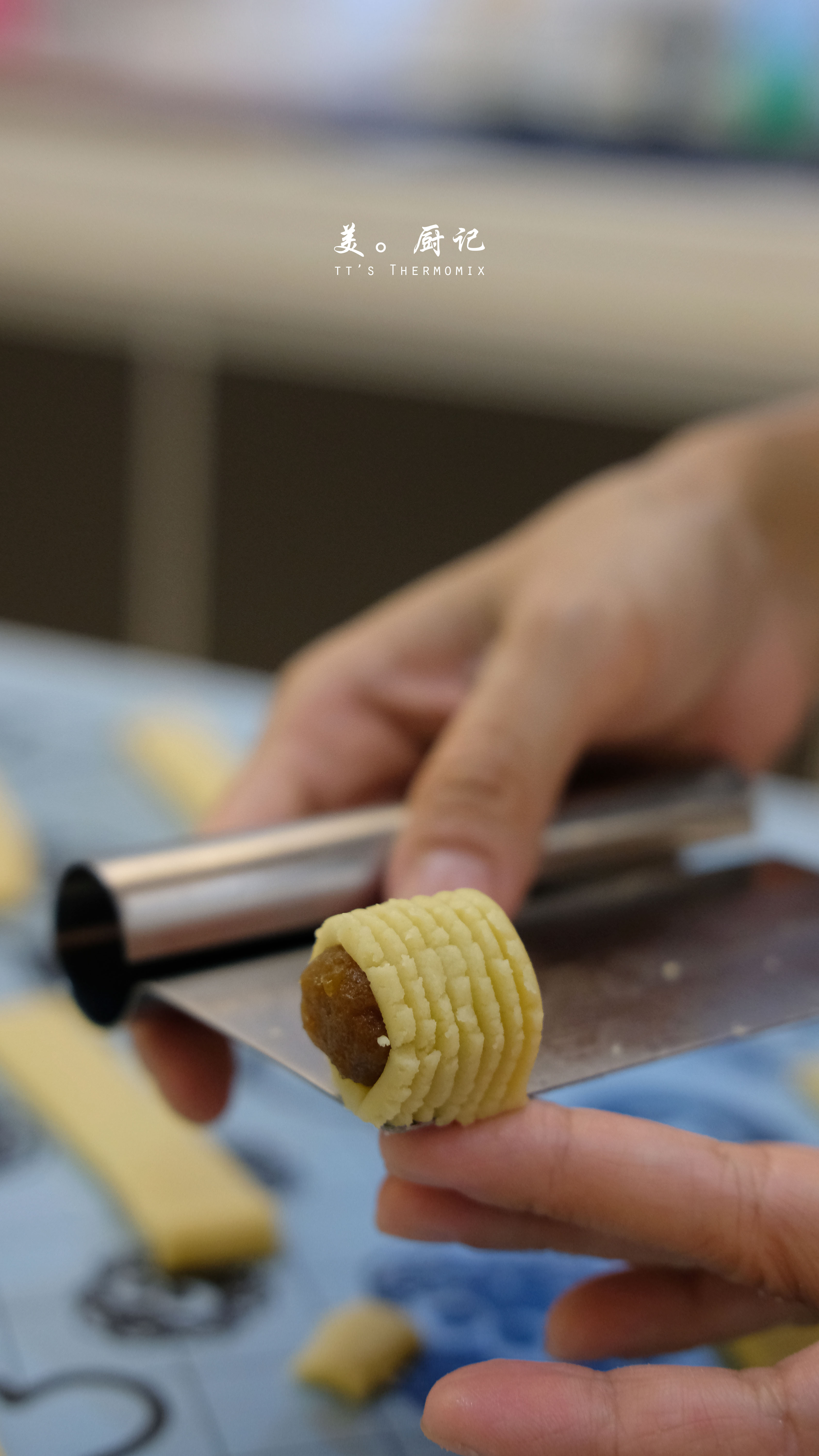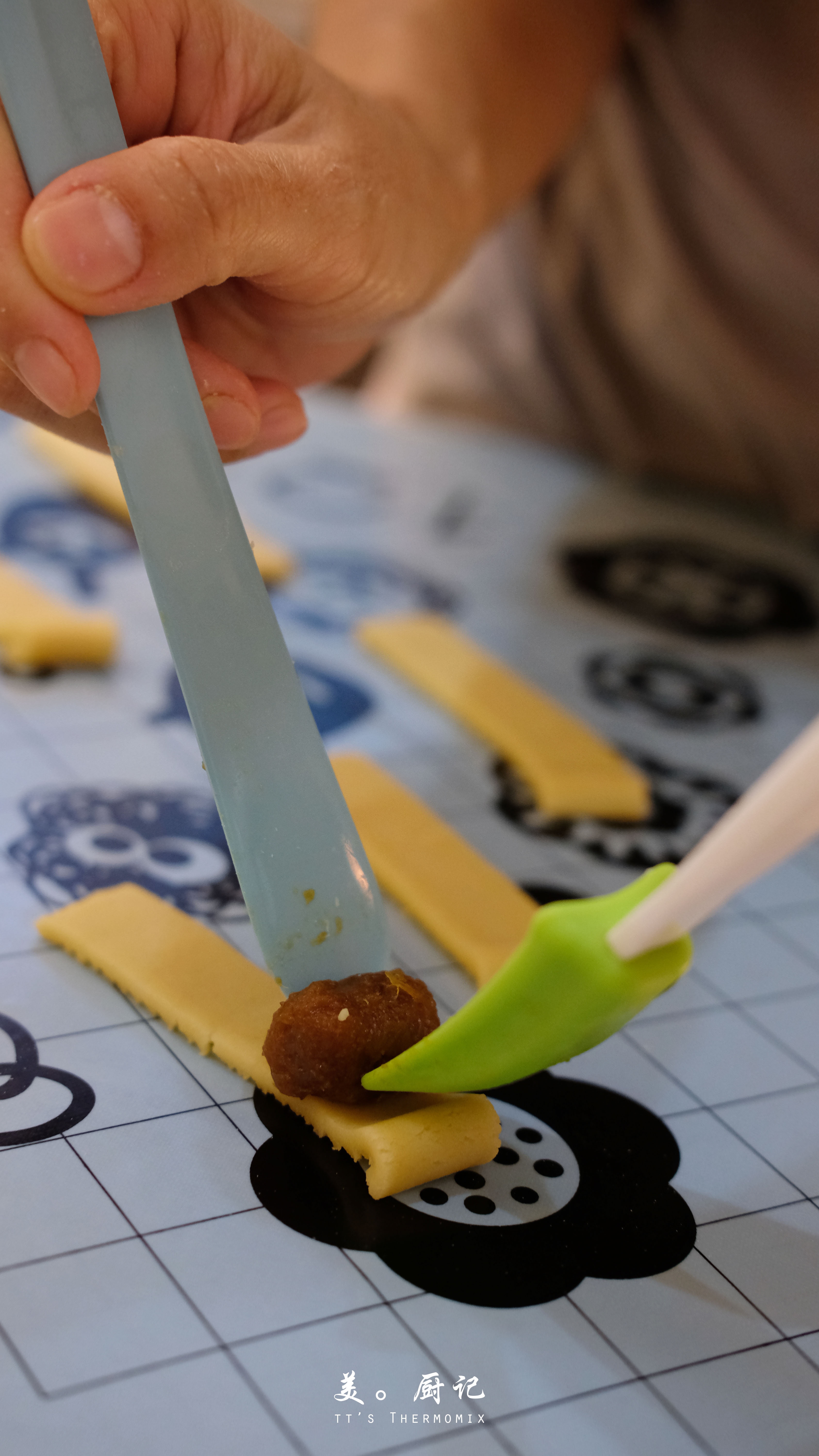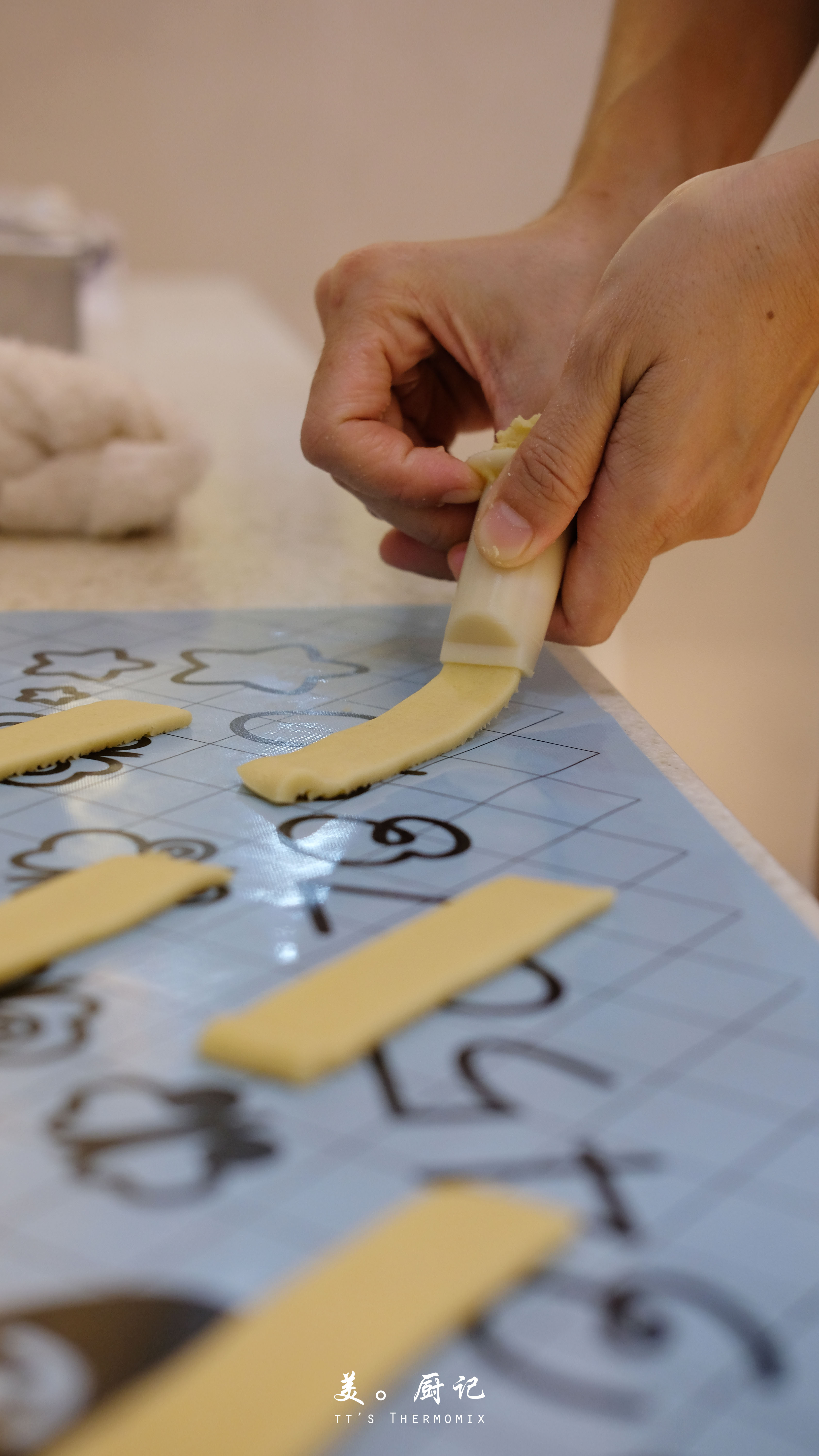 我很喜歡製作傳統鳳梨酥卷,覺得一擠一拉之間的連貫動作很是有趣,而且當中具有一定的挑戰性。擠得太慢,酥皮會變得又厚又皺。擠得太快,酥皮會中途裂開。難得這次製作到最後秉爸剛好放工回來,於是趕緊讓他幫我拍了一系列的步驟圖,好讓大家對鳳梨酥卷的製作有個基本概念。^^