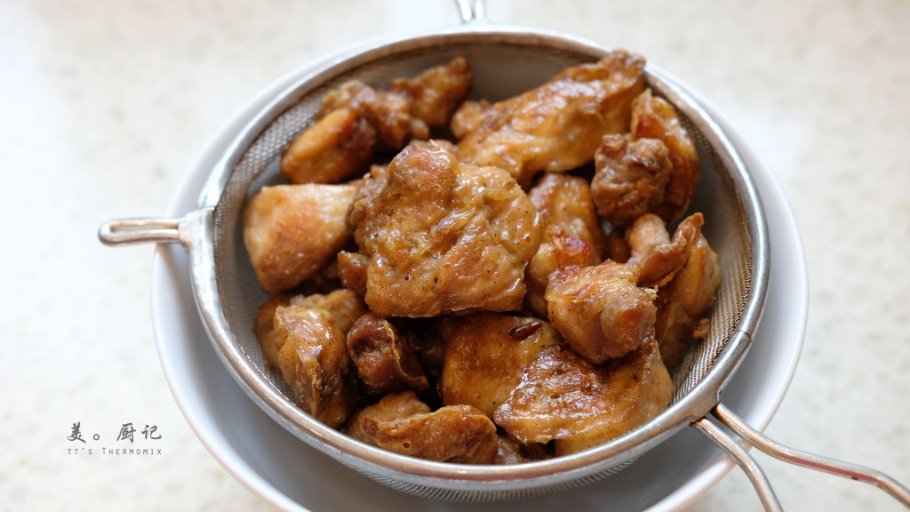 這是我第一次用烤箱代替油鍋來處理酥炸雞肉的部分,本來還擔心烤出來的肉質會很乾,卻沒想到最後的「烤箱版酥炸雞丁」鮮嫩多汁表面還帶有多少的酥脆度。加上烘烤中不加一滴油,釋放的完全是雞肉本身的天然油脂,除了健康加分,口感更是不油不膩出乎意料的好吃!)^o^(