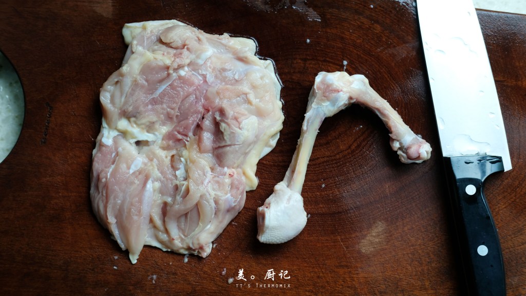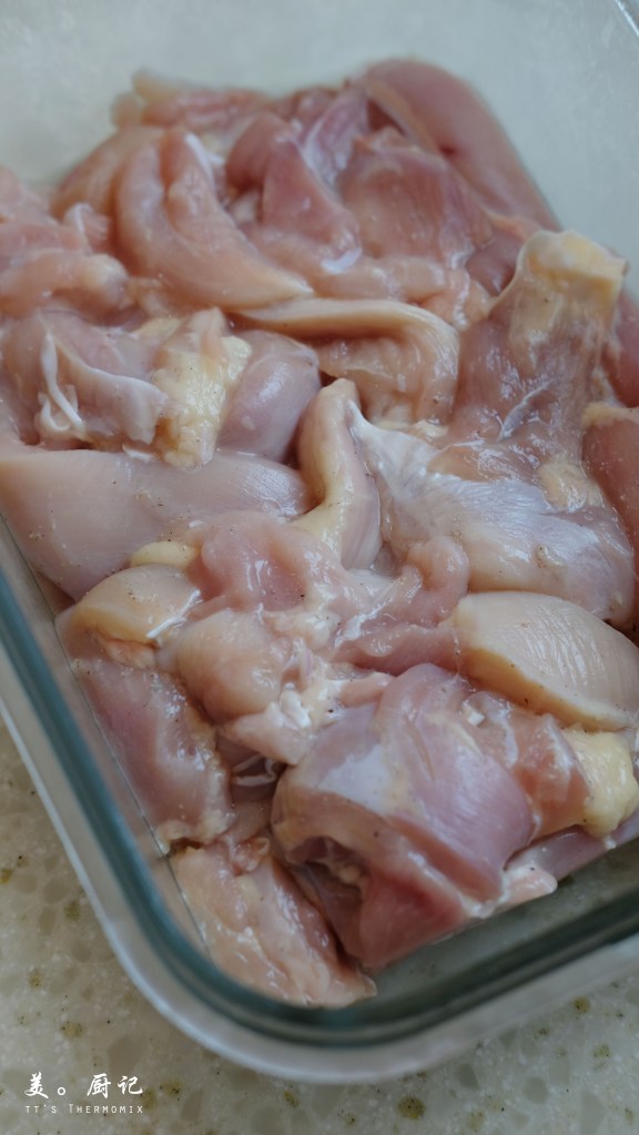- 全雞腿 3隻(約620g), 起骨去皮切條 *500g