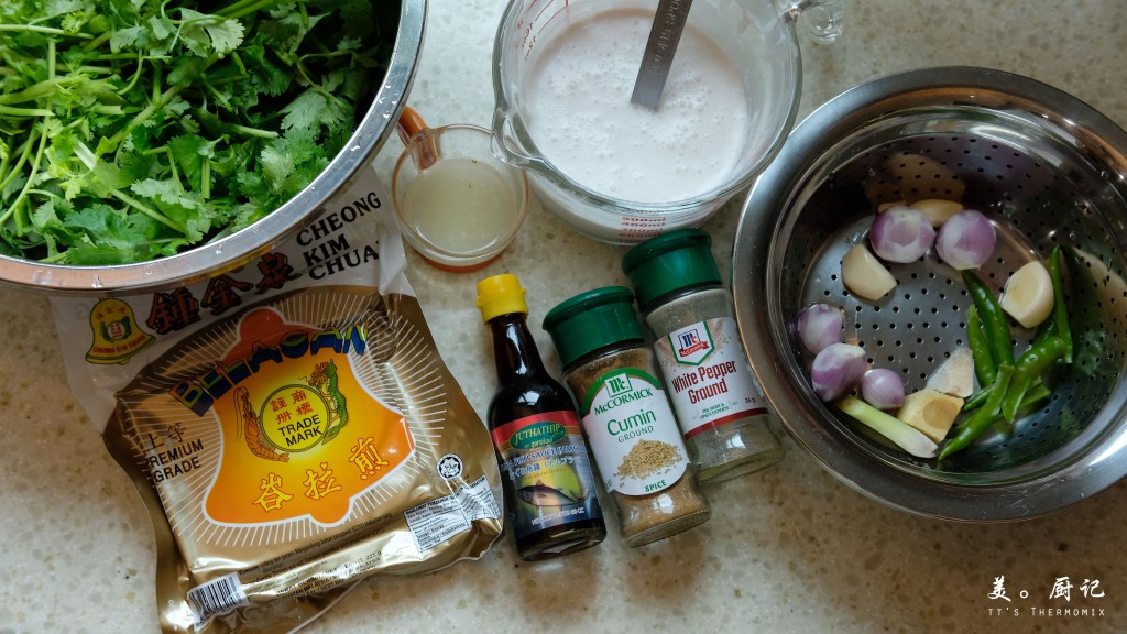- 新鮮芫荽(包括根莖) 150g, 切段