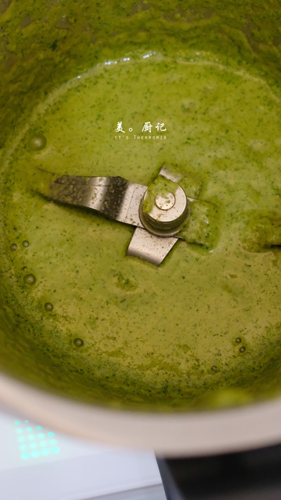 加入新鮮九層塔以5秒/速度6切碎