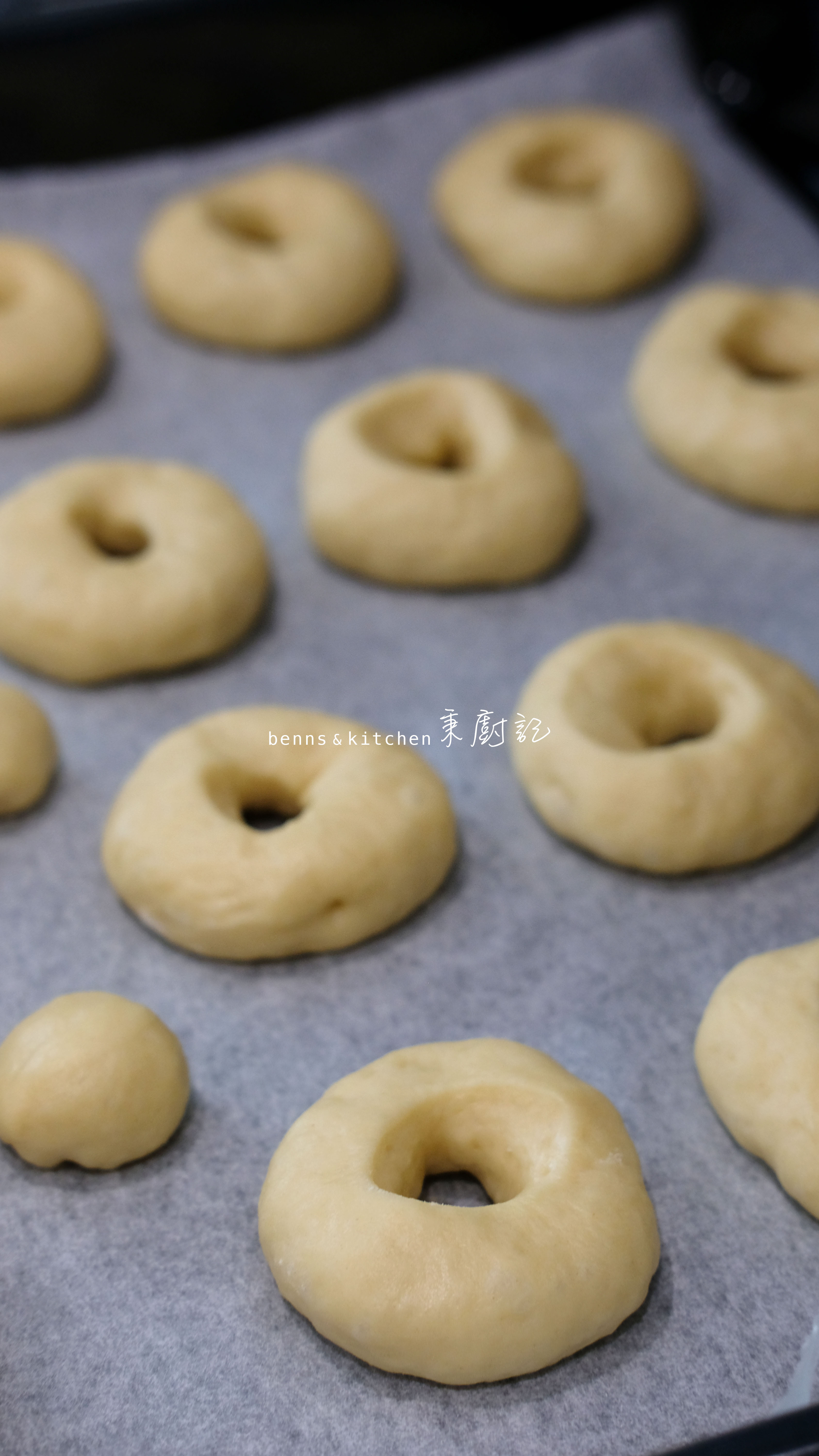 - 我這次做的甜甜圈比較小(約40g一個),喜歡大一點的可以將麵團分割成約50g一個。