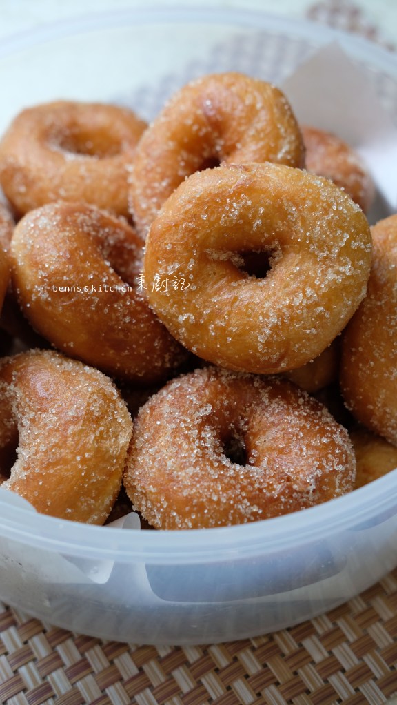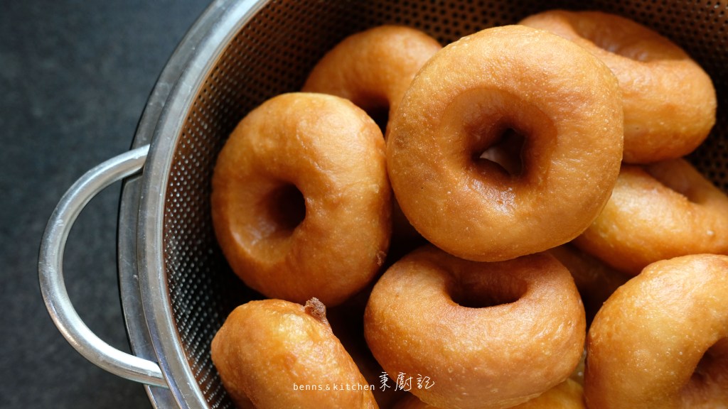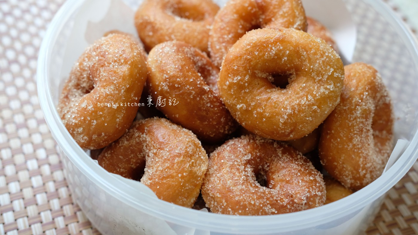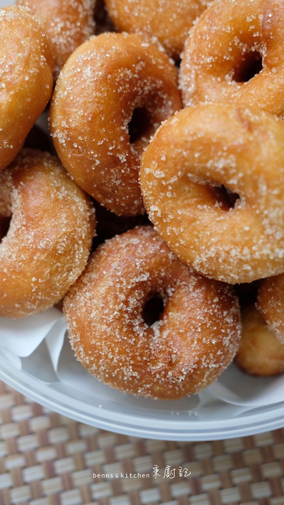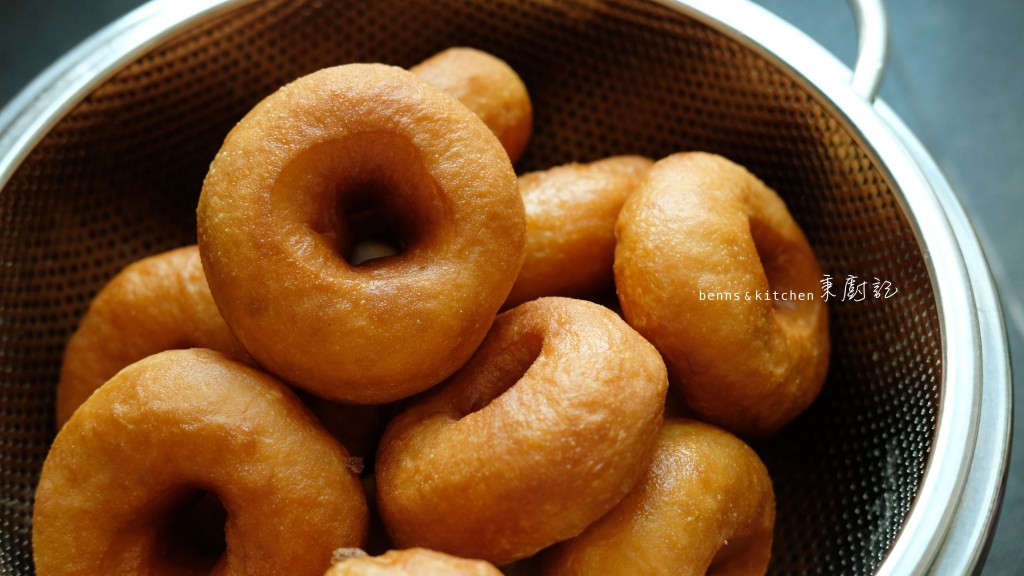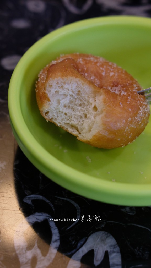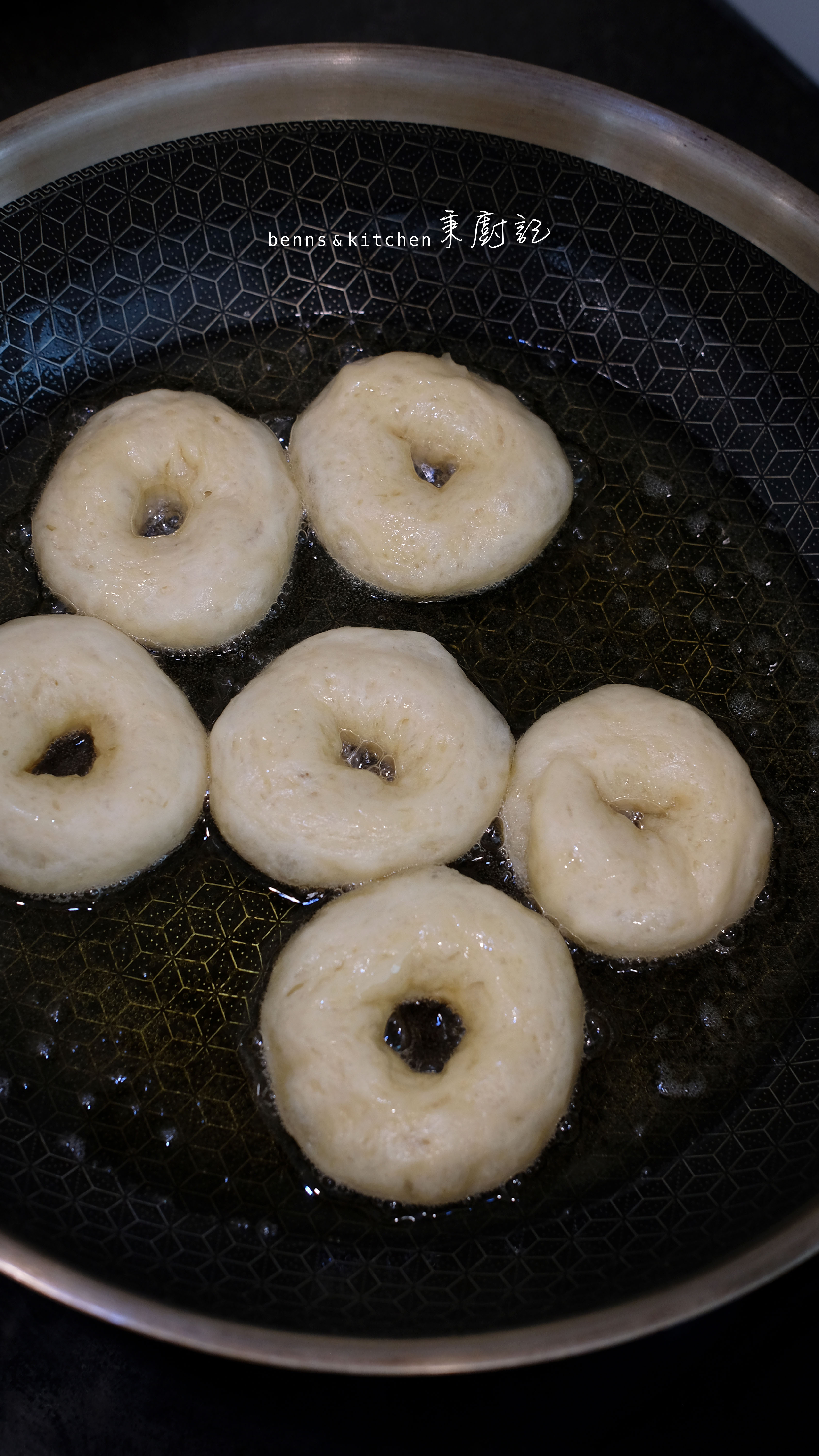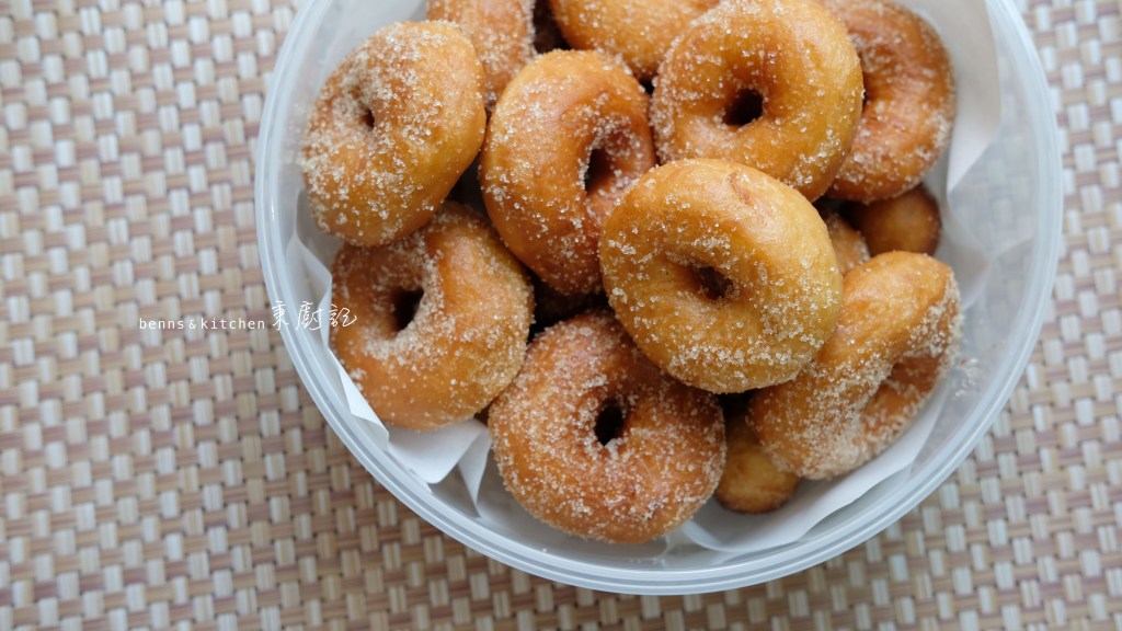 - 原食譜有加入1/2tsp的發粉,我將其省略,無泡打粉甜甜圈吃起來更健康。