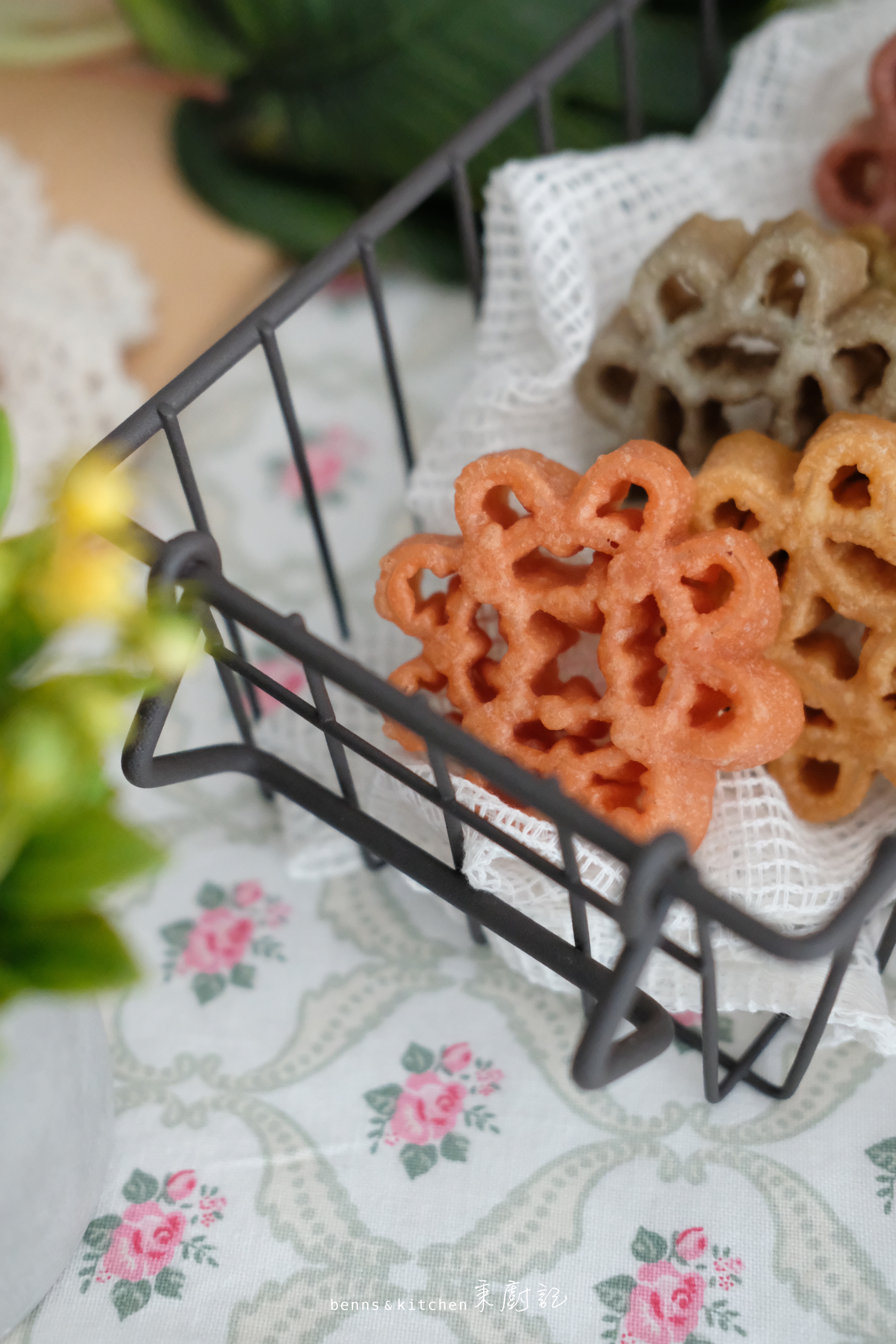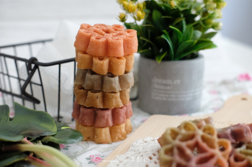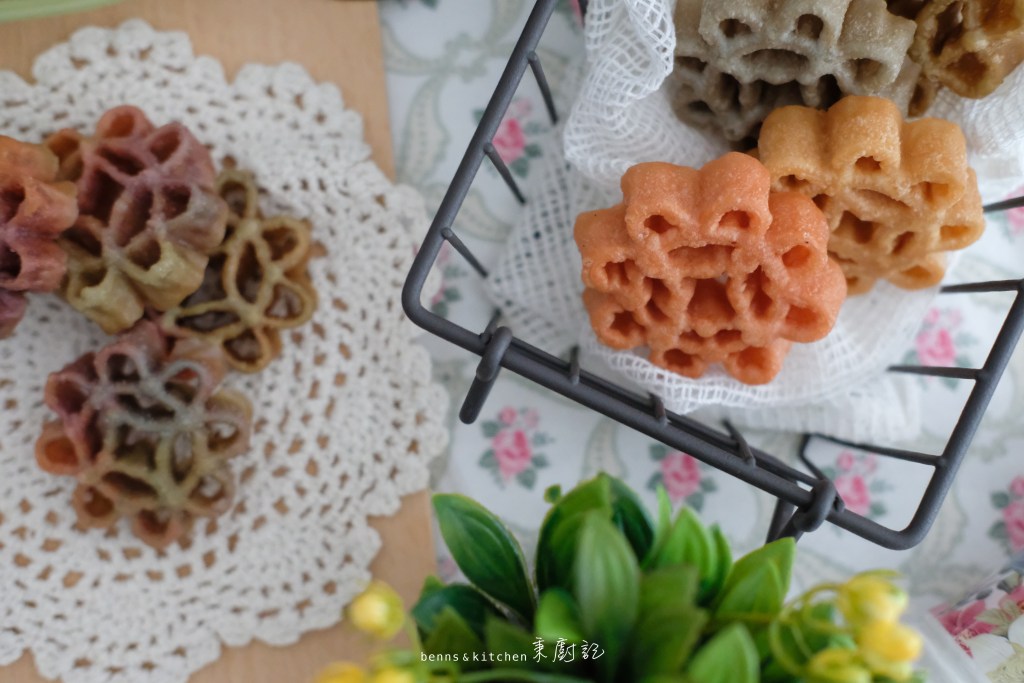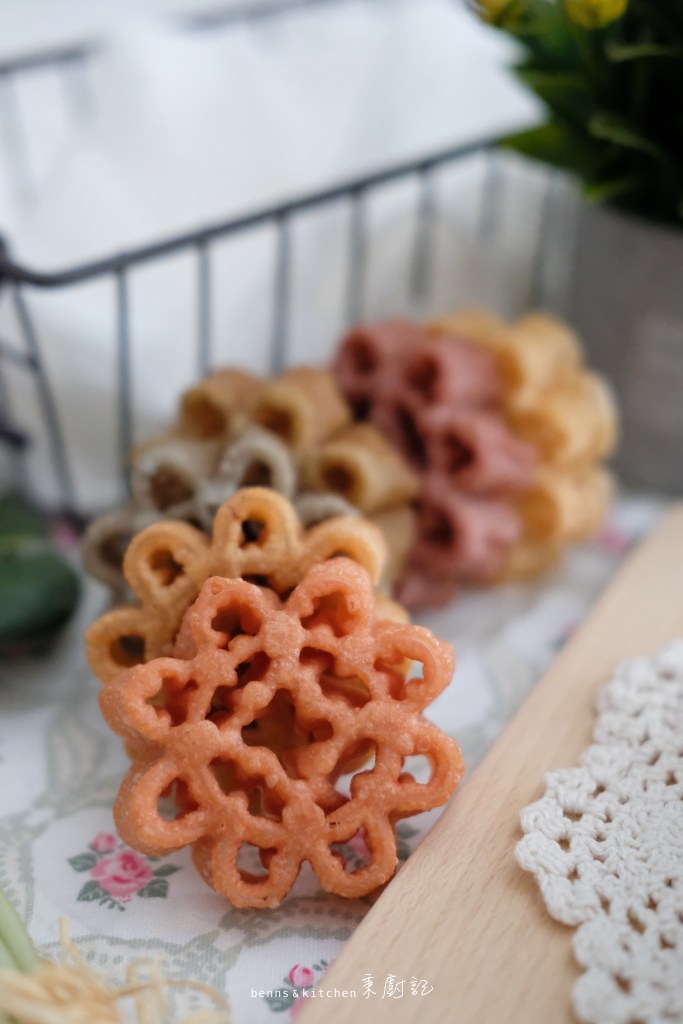 「哦我知道啊~很多人的食譜都是放粘米粉的,但口感會比較硬沒我這食譜的好吃,而且聽說做出來的餅腳軟軟的站不到。我的妳放心,絕對可以站到美美的,而且放在外面久了也不怕漏風⋯⋯」我媽拍胸脯給了我一支強心針。