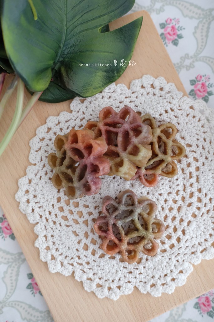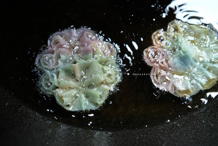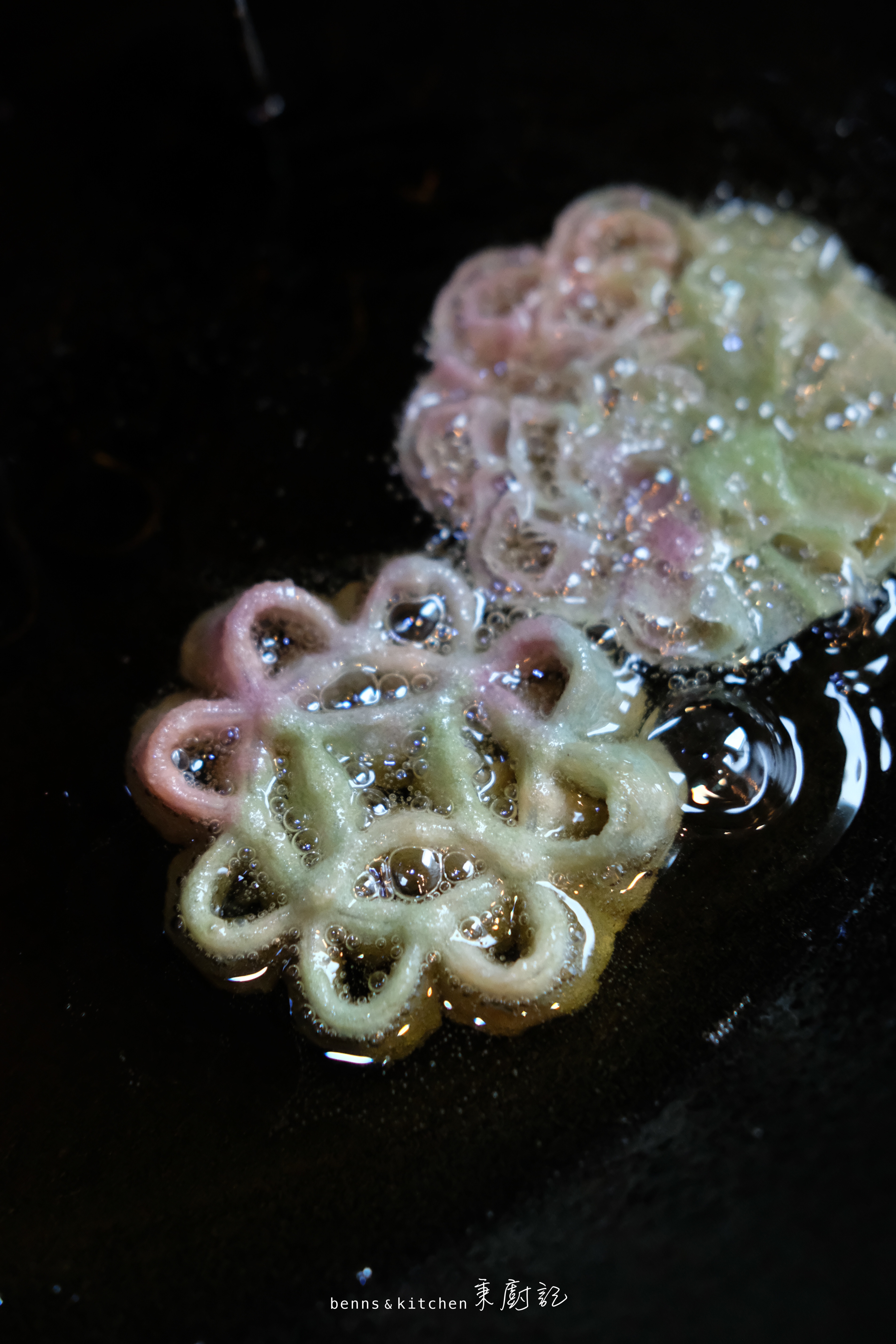 特別喜歡剛剛脫模,像花一樣在油鍋裡盛開的蜂巢餅皮。