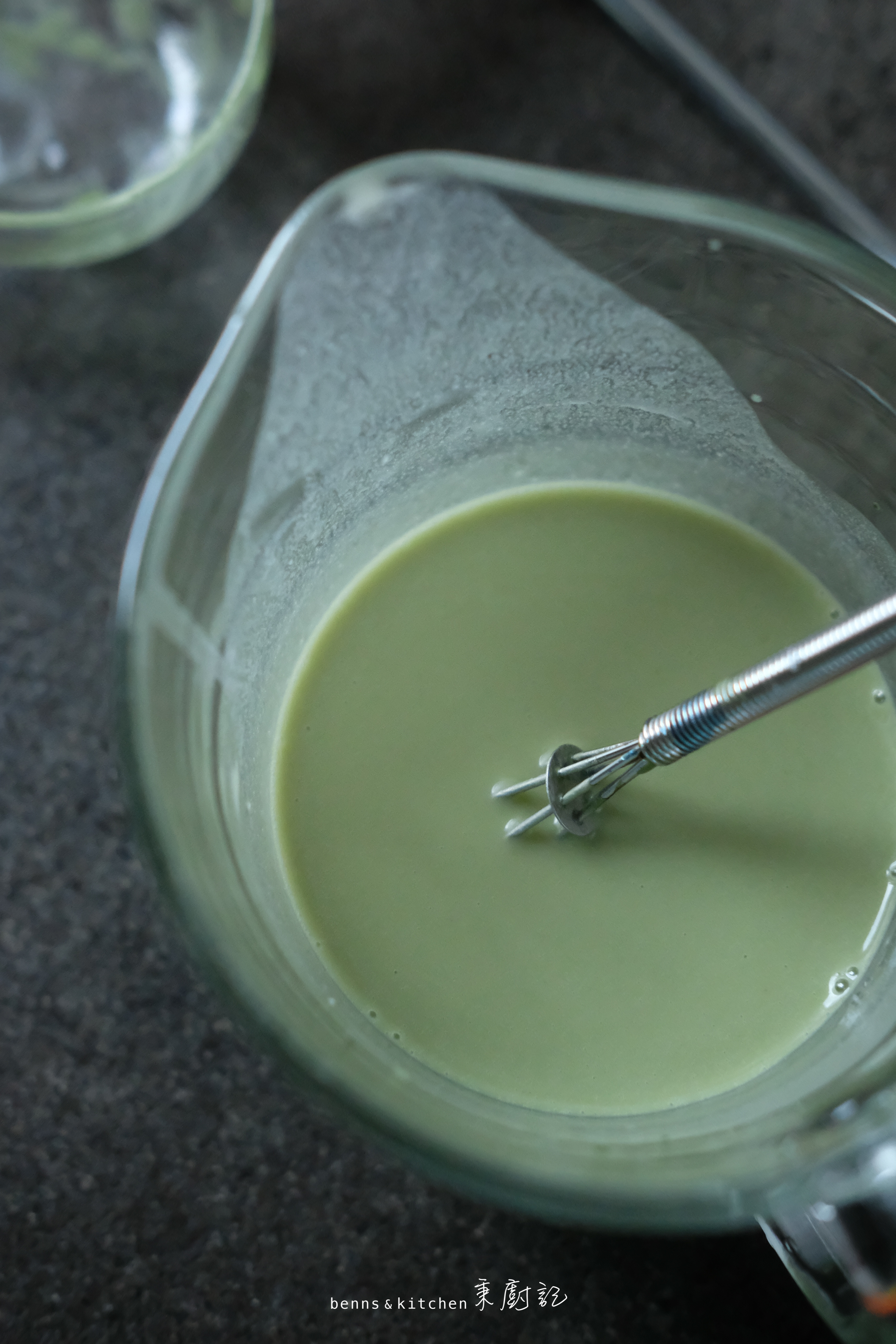 - 取一個比模具大一點的杯子,取一部分作法3的麵糊倒入其中備用。
