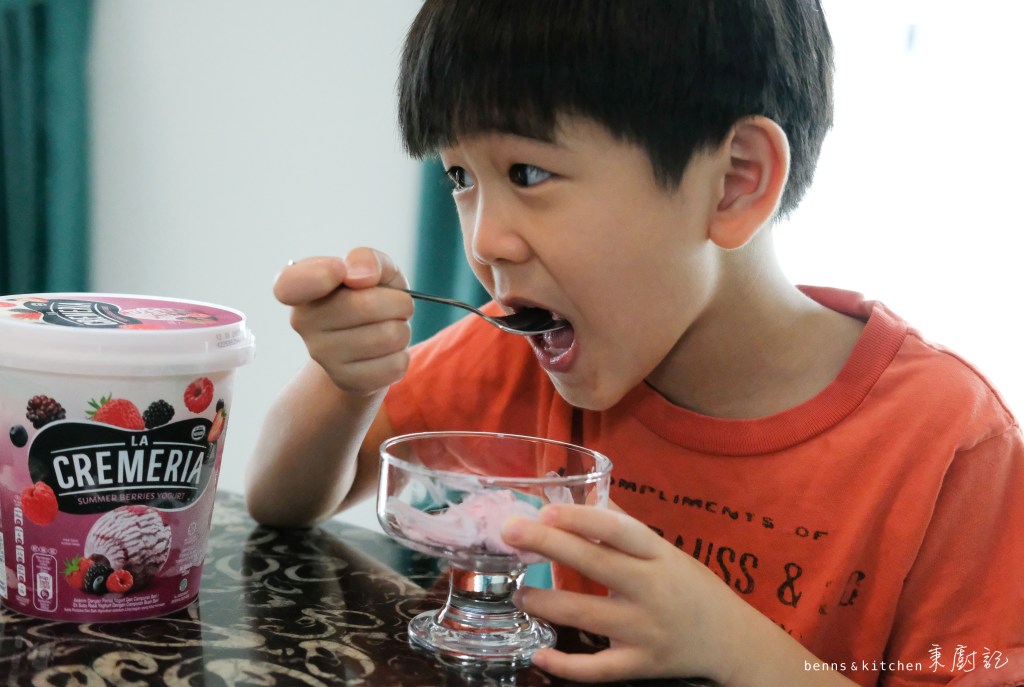 吃完了粥,媽咪獎勵迷秉吃雪糕。
