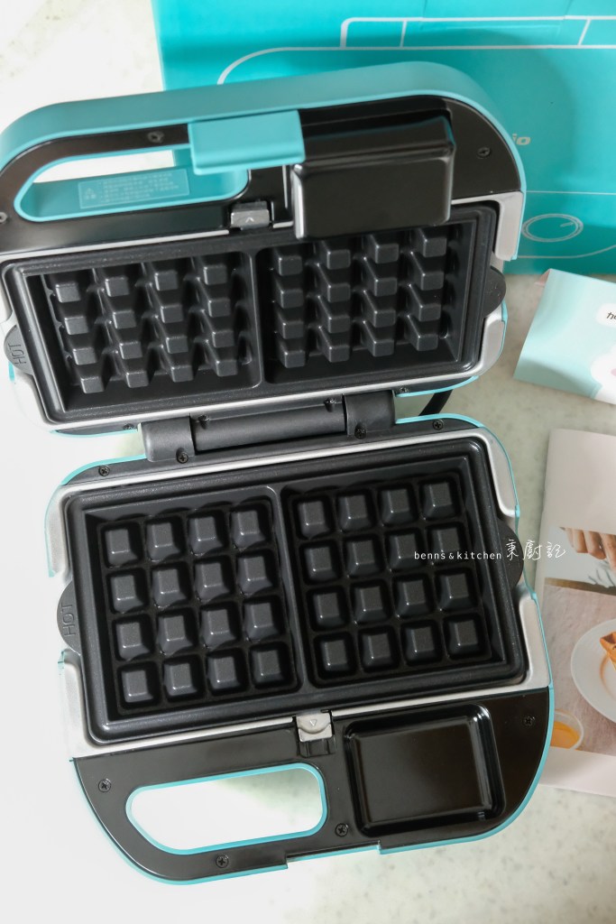 小v主機配套裡,除了內附的瓦夫餅烤盤(Waffle Plate)以及熱壓吐司烤盤(Square Hot Sandwich Plate),另外還加贈了一套法式蕾絲薄餅烤盤(Pizzelle Plate)。