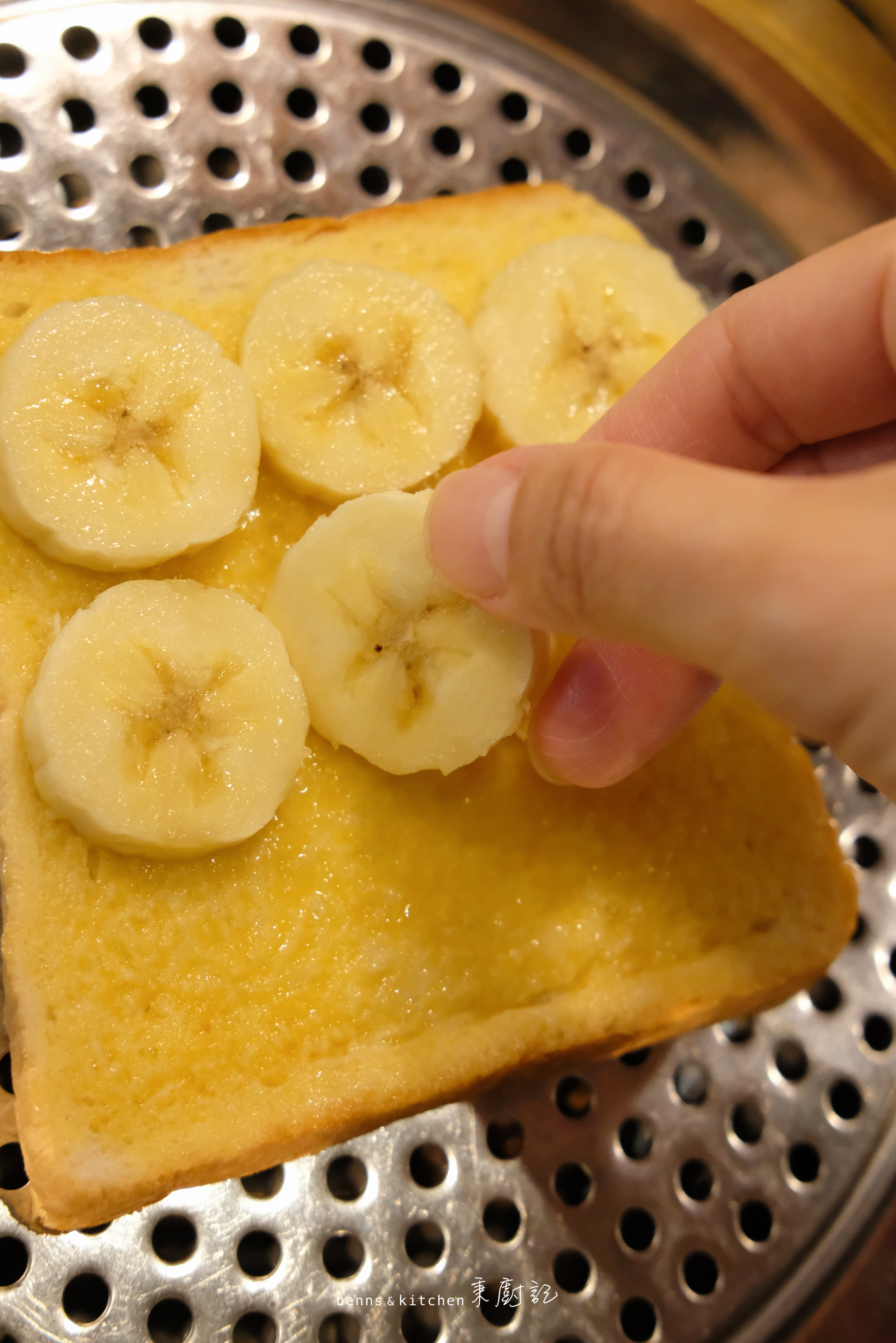 今天的早餐,該是曾經在群裡轟動一時的網紅香蕉烤土司。