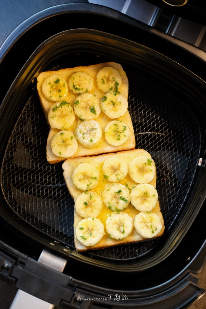喜歡用氣炸鍋烤吐司,不光是因為時間比烤箱烤的大大縮短了一半,重點是剛烤好的吐司口感上不會太乾,外邊脆脆的內裡軟軟的特別好吃。