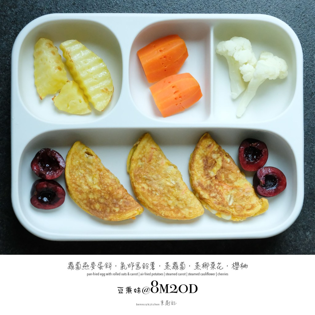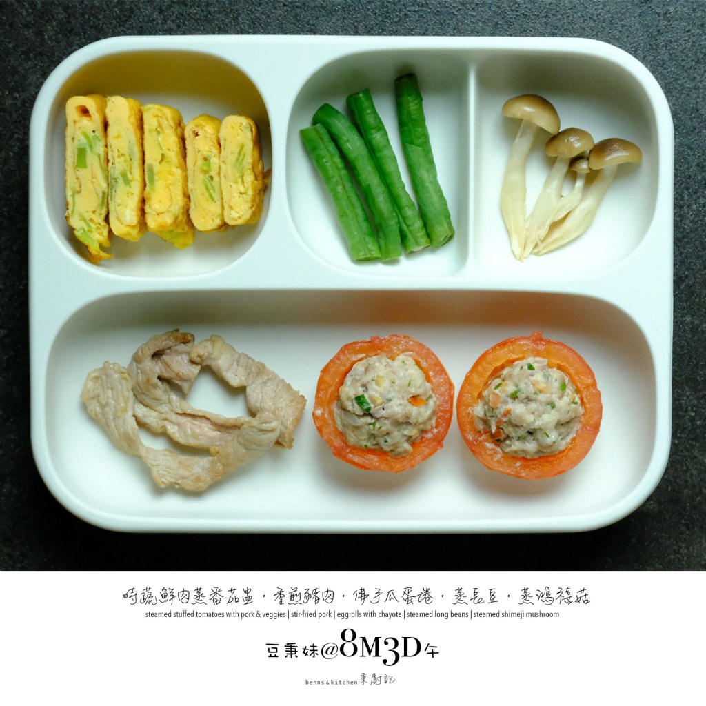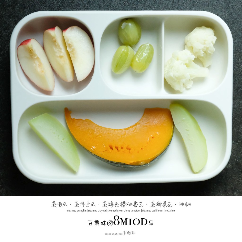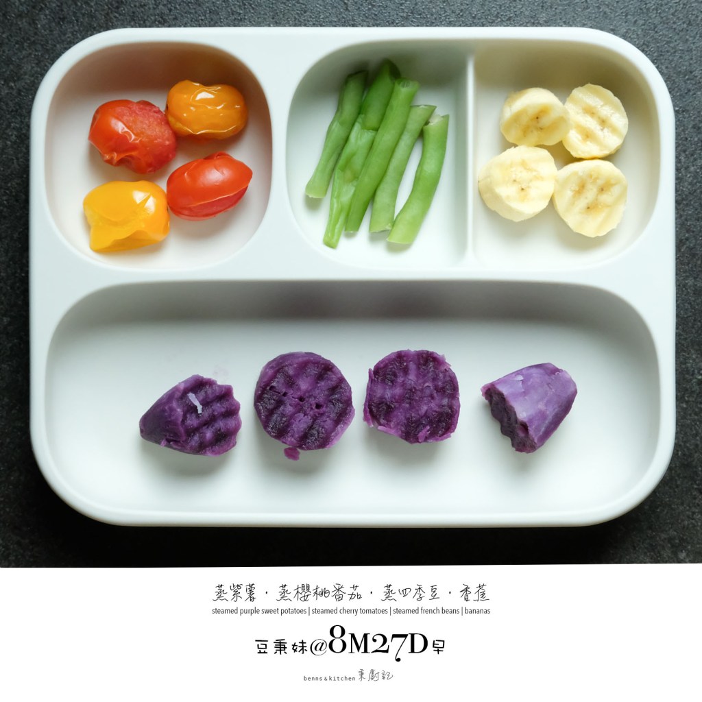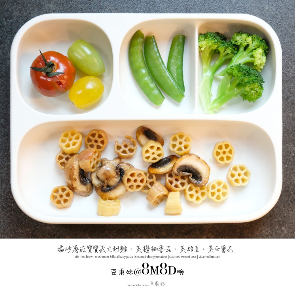 八個月大的豆秉妹,自主意識更強了,咀嚼與手握能力更棒了,懂得觀察入微細細品味了,不再傻乎乎的來者不拒了,能夠更明顯地表達對食物的喜惡了。