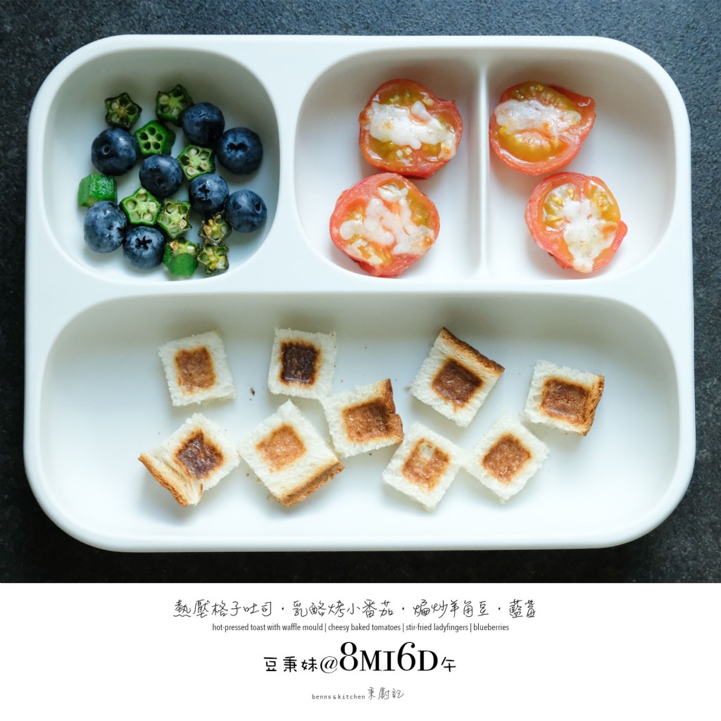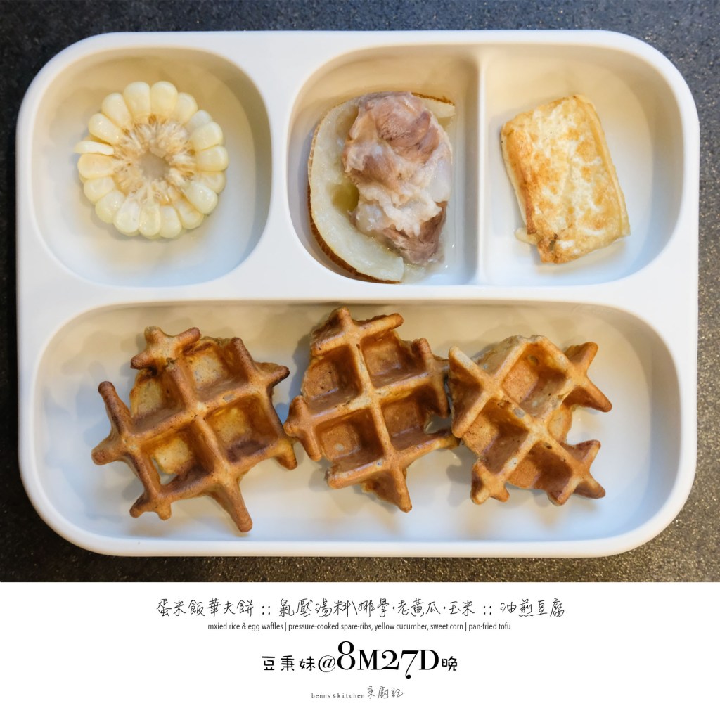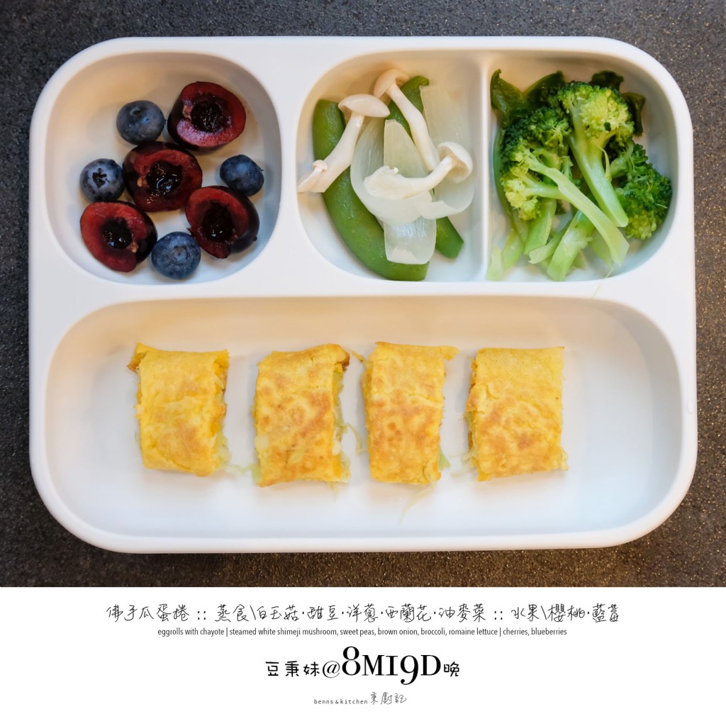 除了一貫的切水果蒸蔬菜,媽咪我開始打蛋液、絞肉碎、弄飯糰、煮意麵、燉排骨、烤乳酪、煎鬆餅、蒸米糕、等等等等。