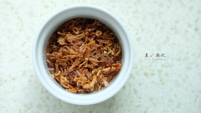 週日下午,想說午餐就簡單些來點米粥吧!吃粥的話,一定少不了最後那畫龍點睛的油蔥酥。嘿嘿,終於讓我逮到機會嘗試用…