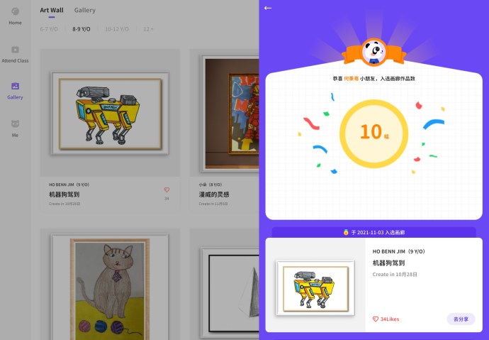 畫了麼裡頭,有一個畫廊。 畫廊裡一片色彩繽紛,滿滿的童趣,標榜的都是孩子們用心繪畫的入選作品。 我對小秉說,你…
